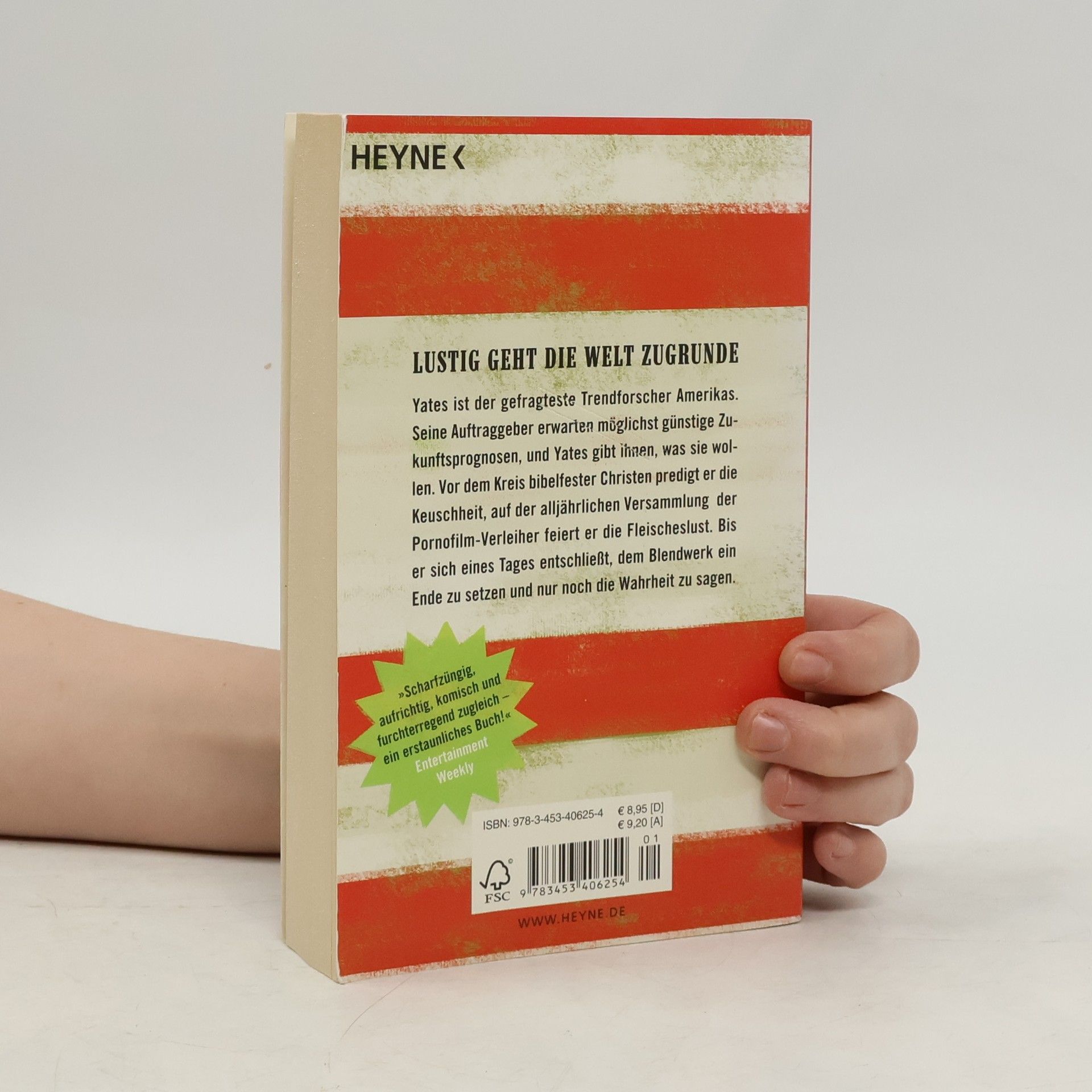 Lustig geht die Welt zugrunde – eine bitterböse Gesellschaftssatire der Extraklasse Yates ist der gefragteste Trendforscher Amerikas. Seine Auftraggeber erwarten möglichst günstige Zukunftsprognosen, und Yates belügt sie mit einer begnadeten Nonchalance. Bis er sich eines Tages entschließt, dem Blendwerk ein Ende zu setzen und nur noch die Wahrheit zu sagen. Wer die Medien beherrscht, hat die öffentliche Meinung, das Geld und die Macht auf seiner Seite. Yates, der Futurologe, kennt die Spielregeln genau. Für sehr viel Geld verkauft er seinem Publikum das, was es hören will. Vor dem Kreis bibelfester Christen predigt er die Keuschheit, auf der alljährlichen Versammlung der Pornofilmverleiher feiert er die Fleischeslust. Doch irgendwann ist das Maß voll. Yates beschließt, die Wahrheit zu sagen. Er outet sich als Scharlatan und diskreditiert seinen gesamten Berufszweig. Aber der geplante Karriere-Selbstmord schlägt fehl. Die große Empörung bleibt aus, stattdessen wird Yates bejubelt und avanciert gegen seinen Willen über Nacht zur Legende. Die Welt aus Lug und Trug scheint ihn nicht preisgeben zu wollen, doch Yates gibt nicht auf und hat schließlich die zündende Idee. • Nominiert für den „National Magazine Award“ • Eine großartig unterhaltsame Gesellschaftssatire