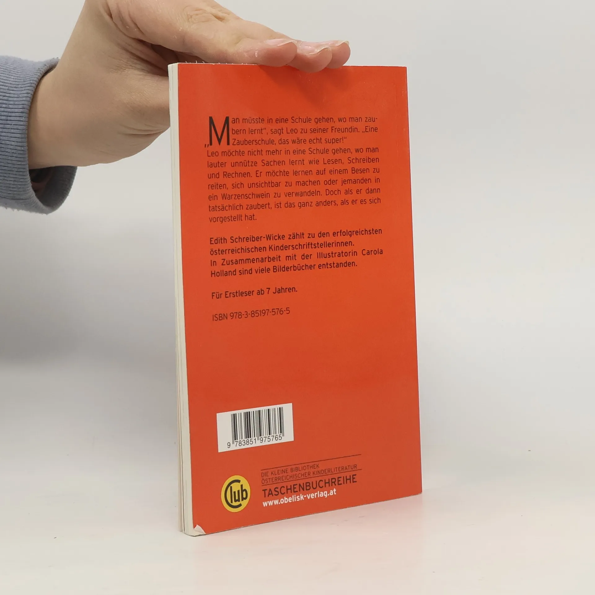 „Man müsste in eine Schule gehen, wo man zaubern lernt“, sagt Leo zu seiner Freundin. „Eine Zauberschule, das wäre echt super!“ Leo möchte nicht mehr in eine Schule gehen, wo man lauter unnütze Sachen lernt wie Lesen, Schreiben und Rechnen. Er will lernen auf einem Besen zu reiten, sich unsichtbar zu machen oder jemanden in ein Warzenschwein zu verwandeln. Doch als er dann tatsächlich zaubert, ist das ganz anders, als er es sich vorgestellt hat. Edith Schreiber-Wicke zählt zu den erfolgreichsten österreichischen Kinderschriftstellerinnen. In Zusammenarbeit mit der Illustratorin Carola Holland sind viele Bilderbücher entstanden. Für Erstleser ab 7 Jahren