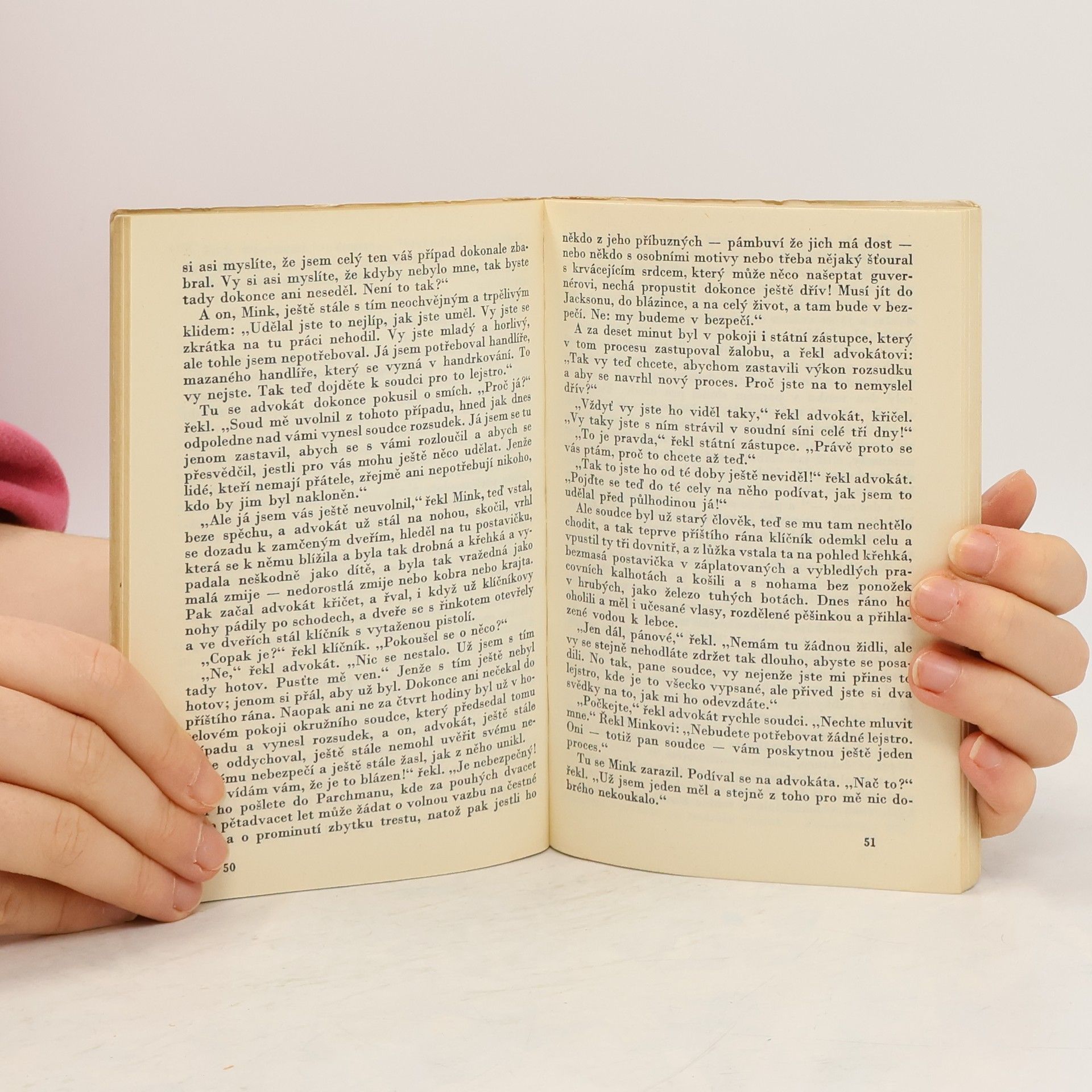 Dějově i ideově samostatný celek tvořící úsek z autorova rozsáhlého románu Panské sídlo. Je to tragický, místy groteskním humorem prosvětlený případ chudáka, který zavraždil boháče, a když po osmatřiceti letech vyjde z vězení je veden jedinou touhou: zavraždit bratrance, který mu mohl pomoci, ale nepomohl a udělal zatím skvělou kariéru, a sám tak aspoň trochu korigovat nespravedlnost společenského řádu. Novela patří k vrcholům Faulknerova umění. Obálka: Zbyněk Sekal 15000 výt.