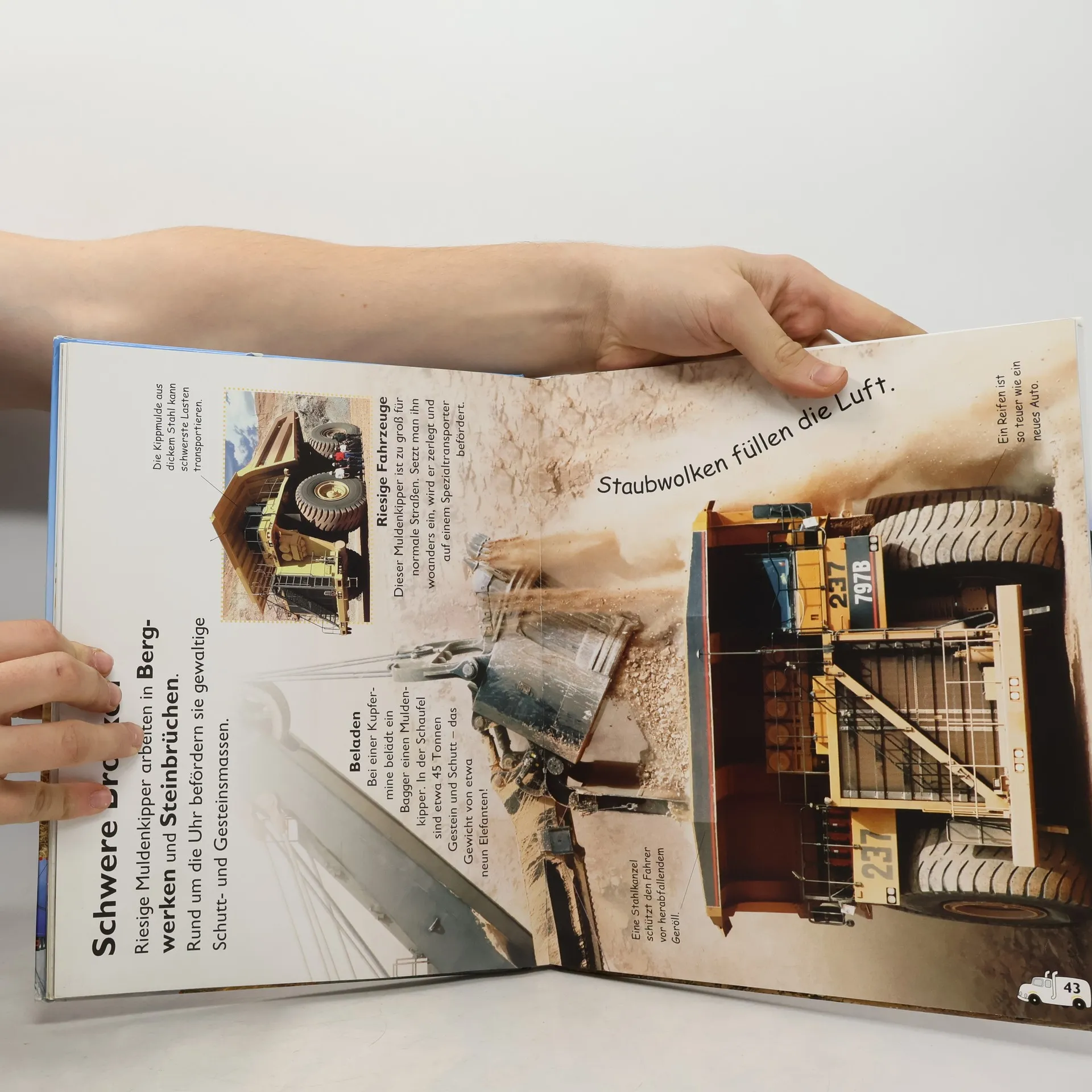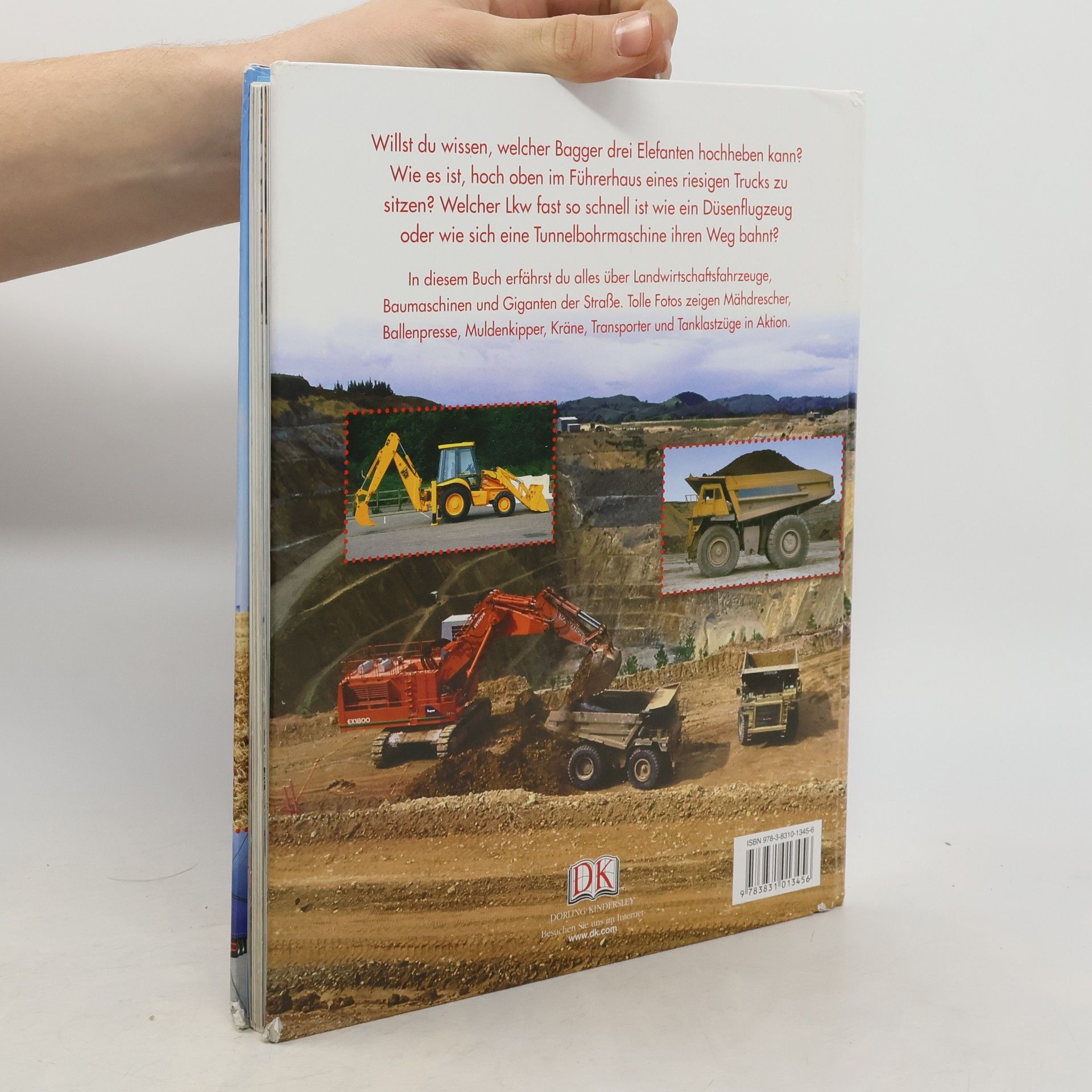 Sie sind riesengroß, tonnenschwer und ganz schön beeindruckend -Traktoren, Bagger und Laster bringen fast alle Kinder zum Staunen. In diesem Buch kann man diese gewaltigen Fahrzeuge in Aktion erleben. Kombiniert mit kurzen, leicht verständlichen Texten und über 120 tollen Fotos werden die Einsatzmöglichkeiten erklärt und die unterschiedlichsten Fahrzeuge auf eindrucksvolle Weise bei der Arbeit vorgestellt. Dabei gibt es viele typische Szenen zu sehen, die Kinder aus ihrem Alltag wiedererkennen - wie der Traktor beim Pflügen auf dem Feld oder der Bagger, der eine Grube aushebt. Aber auch spektakuläre Manöver wie Bulldozer, die eine Wüste planieren, kann man hier aus nächster Nähe bewundern. Ab 4 Jahren.