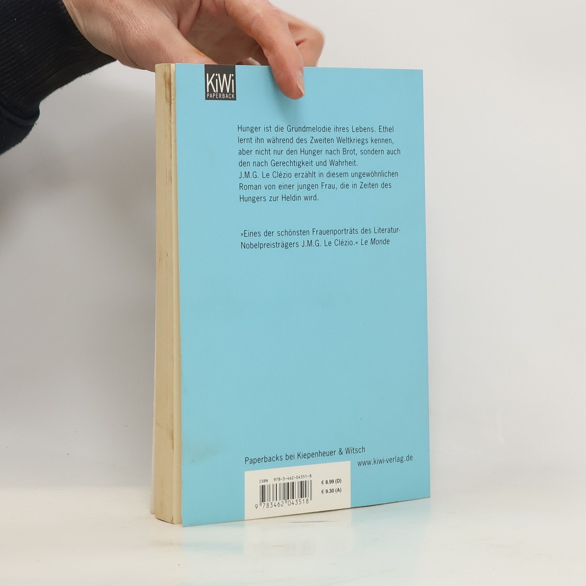 »Eines seiner schönsten Frauenporträts« Le Monde Hunger ist die Grundmelodie ihres Lebens. Ethel Brun lernt ihn während des Zweiten Weltkriegs kennen, aber nicht nur den Hunger nach Brot, sondern auch den nach Glück, nach Gerechtigkeit und Wahrheit. In Paris leidet Ethel vor allem unter der un-glücklichen Ehe der Eltern und dem ständigen Streit ums Geld. Der großspurige Lebensstil ihres Vaters Alexandre droht die Familie in den Bankrott zu stürzen. Als die nationalistischen und antisemitischen Töne in Frankreich lauter werden, kümmert sie sich – kaum zwanzig Jahre alt – couragiert um die zerrütteten Finanzen und flieht mit den hilflosen Eltern nach Nizza, nachdem die Deutschen Paris besetzt haben. Nach bitteren Jahren des Hungers und innerlich von ihren Eltern gelöst, heiratet sie und wird nach Kanada auswandern, in eine Welt ohne Antisemitismus, ohne Kriege, ohne Hunger. Völlig unpathetisch, in einer klaren, poetischen Sprache entwirft J. M. G. Le Clézio das Bild einer dramatischen Zeit und einer unerschrockenen jungen Frau.