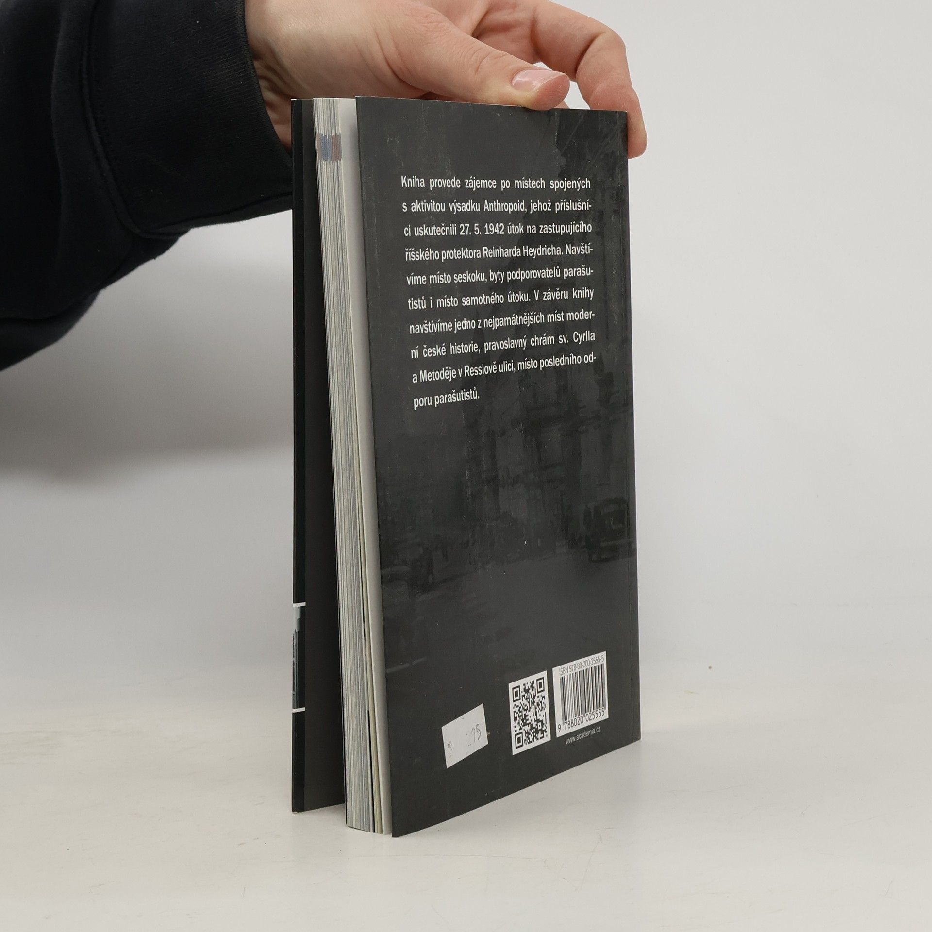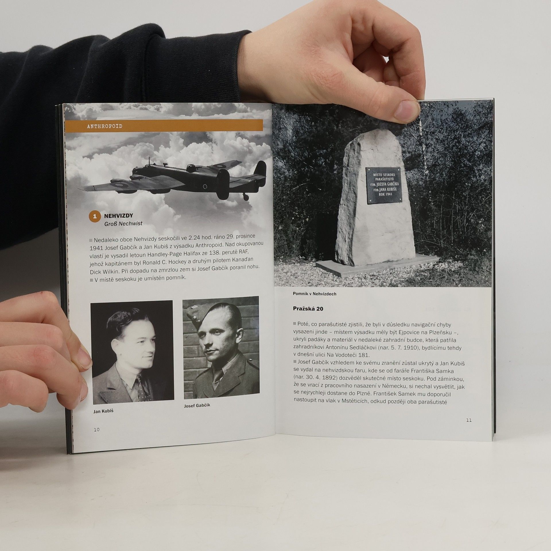 Kniha mapuje místa spojená s aktivitou parašutistického výsadku, jehož příslušníci uskutečnili v r. 1942 atentát na zastupujícího říšského protektora Reinharda Heydricha. Publikace je chronologicky rozdělena do 3 oddílů - první popisuje mimopražské lokality, v nichž se parašutisté pohybovali od seskoku v Nehvizdech 29. 12. 1941 do přesunu do Prahy, druhý se věnuje jejich pobytu v Praze do 27. 5. 1942 a třetí přibližuje místa spjatá s vlastní akcí, útěkem a skrýváním atentátníků až po jejich boj s německými jednotkami v obklíčeném kostele sv. Cyrila a Metoděje v Resslově ulici, Heydrichovou smrtí a pátráním gestapa a represemi vůči podporovatelům a rodinným příslušníkům parašutistů. V závěru najdou čtenáři fotografie rodných domků sedmi výsadkářů včetně snímků pamětních desek a seznam jmen lidí popravených v souvislosti s pomocí při přípravě útoku. Objekty označené názvem ulice v češtině a v němčině a číslem popisným i orientačním jsou v jednotlivých oddílech průvodce číslovány a vyznačeny v mapách, které oddílům předcházejí. Text doprovází řada fotografií osob, domů, pamětních desek i dokumentů.