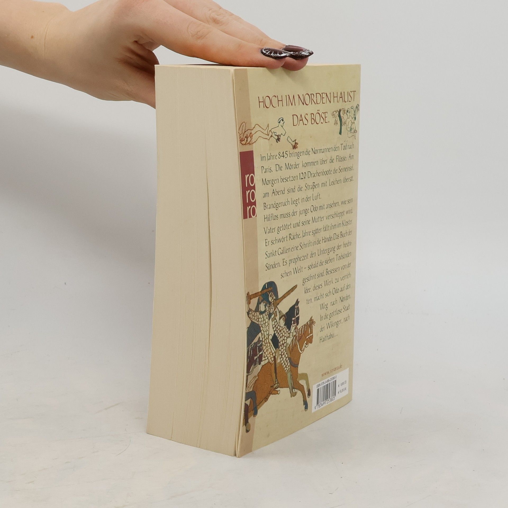 HOCH IM NORDEN HAUST DAS BÖSE Im Jahre 845 bringen die Normannen den Tod nach Paris. Die Mörder kommen über die Flüsse: Am Morgen besetzen 120 Drachenboote die Seineinsel, am Abend sind die Straßen mit Leichen übersät. Brandgeruch liegt in der Luft. Hilflos muss der junge Odo mit ansehen, wie sein Vater getötet und seine Mutter verschleppt wird. Er schwört Rache. Jahre später fällt ihm im Kloster Sankt Gallen eine Schrift in die Hände: Das Buch der Sünden. Es prophezeit den Untergang der heidnischen Welt sobald die sieben Todsünden gesühnt sind. Besessen von der Idee, dieses Werk zu verrichten, macht sich Odo auf den Weg nach Norden. In die gottlose Stadt der Wikinger, nach Haithabu ...