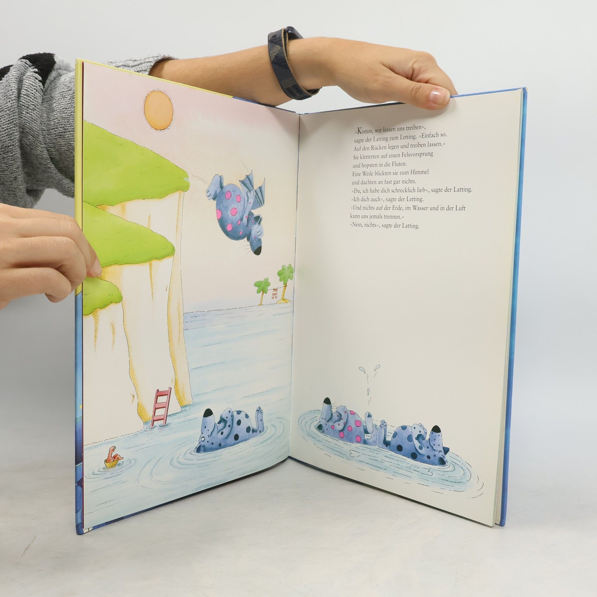 Der Latting und der Letting haben alles, was sie zum Glücklichsein brauchen: sich selbst, einander und ihren Kirschenbaum, von dem sie aus so herrlich Kirschkerne spucken können. Doch der neidische Dögel redet beiden ein, dass ihnen zum ganz großen Glück etwas Wichtiges fehlt. Also machen sie sich auf die Suche … Auf der Suche nach dem ganz großen Glück geht ihnen aber etwas viel Wichtigeres fast verloren: ihre Freude an ihrem Leben, ihre Freude an ihrer Freundschaft. Und es ist wirklich ein ganz großes Glück, dass sie das noch rechtzeitig erkennen! Ein wunderschönes, sehr phantasievolles Bilderbuch mit vielen farbkräftigen Illustrationen und großer Schrift im Sinnschrittsatz, der Kindern den Einstieg ins Lesen fröhlich und leichter gestaltet.