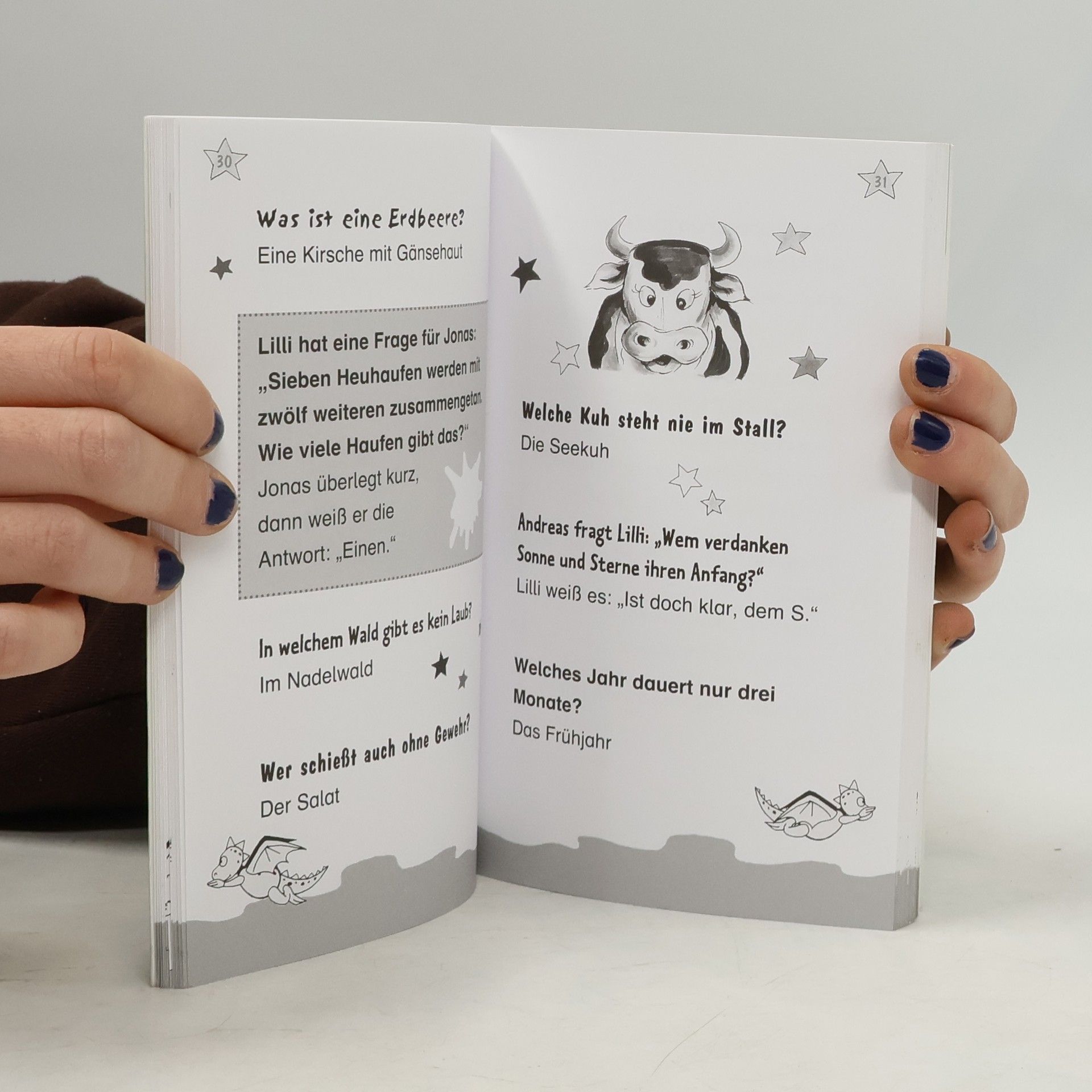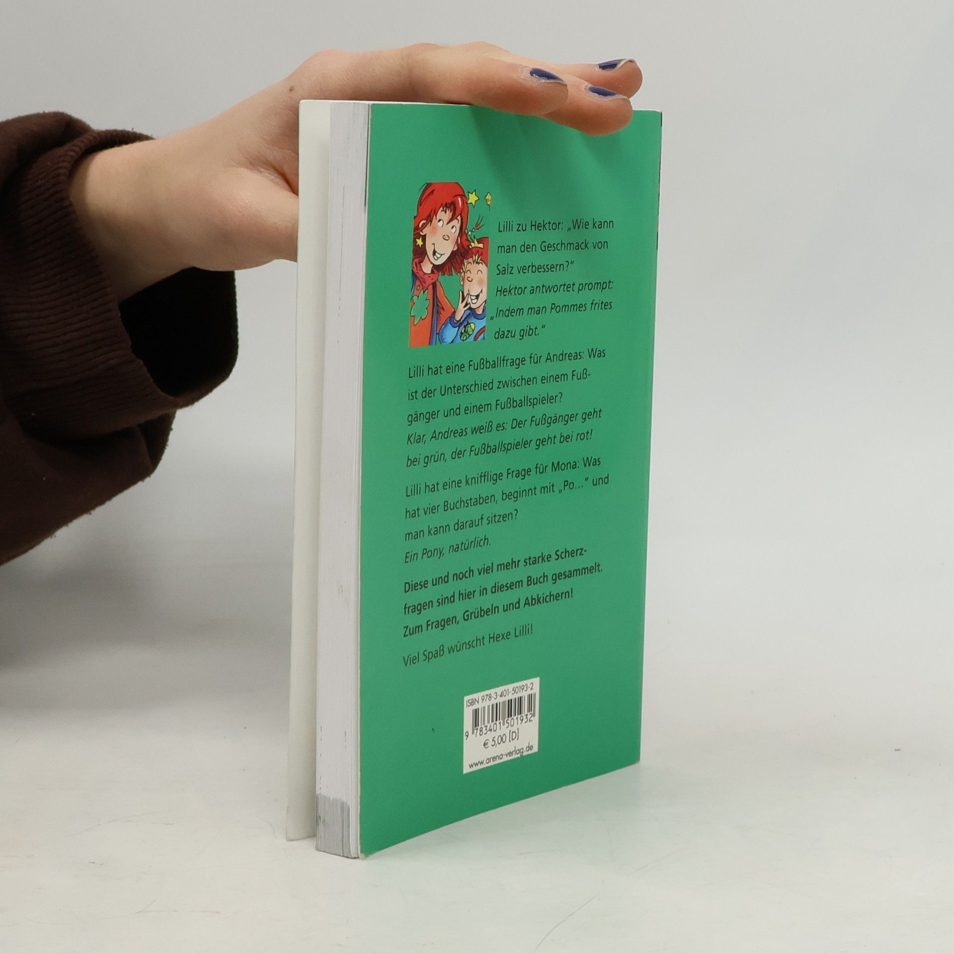Lilli zu Hektor: Wie kann man den Geschmack von Salz verbessern? Hektor antwortet prompt: Indem man Pommes Frites dazugibt! Sorgfältig für die Altersgruppe ausgewählt und mit vielen Illustrationen von Birgit Rieger angereichert, können diese Scherzfragen getrost auf das Zwerchfell der Hexe Lilli-Fans losgelassen werden. Besonderes Extra: Filmstar Hektor im Daumenkino!