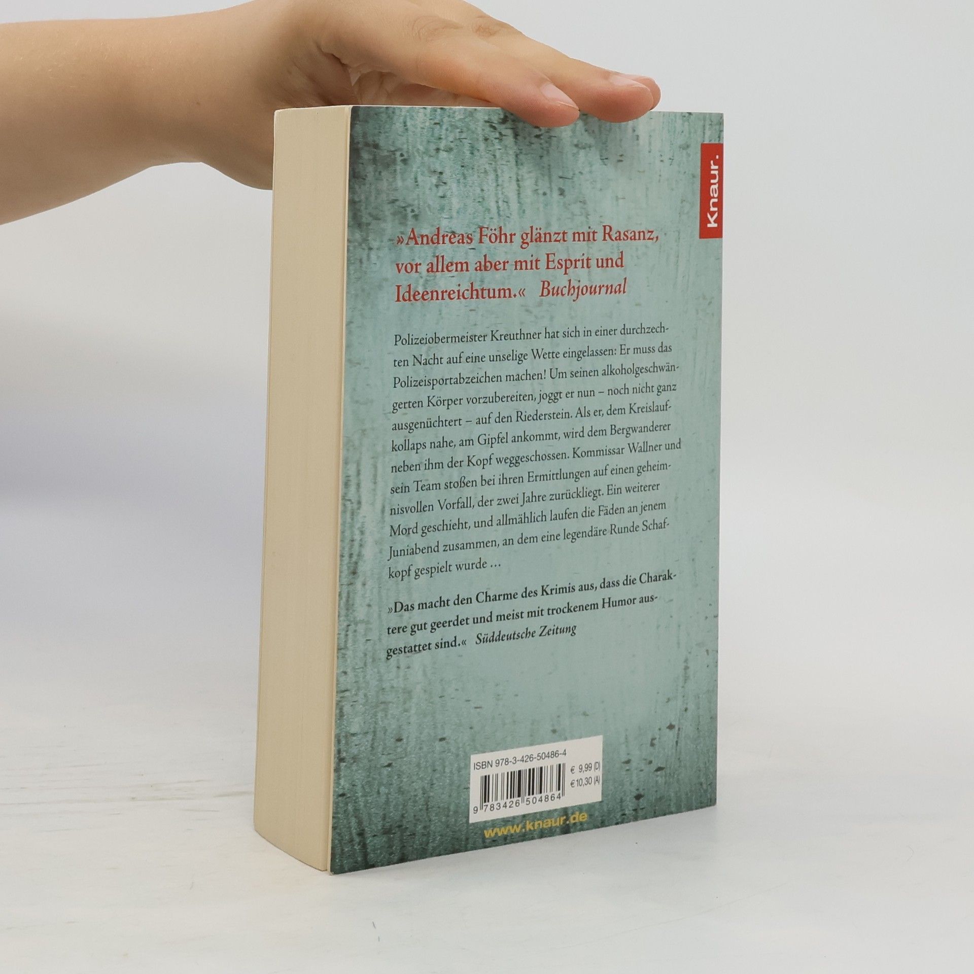 Im zweiten Band der Wallner & Kreuther-Krimireihe geht es hoch hinaus auf den Riederstein-Berg in Oberbayern. Polizeiobermeister Kreuthner hat sich in einer durchzechten Nacht auf eine unselige Wette eingelassen: Er muss das Polizeisportabzeichen machen! Um seinen alkoholgeschwängerten Körper vorzubereiten, joggt er – noch nicht ganz ausgenüchtert – auf den Riederstein. Kurz vor dem Gipfel wird neben ihm ein Bergwanderer erschossen. Der Tote, Stanislaus Kummeder, ein Kleinkrimineller, wirft Fragen auf: Was hatte er auf dem Berg zu suchen und warum schleppte er ein Bierfass mit sich? Kommissar Wallner und Kreuthner stoßen bei ihren Ermittlungen auf das geheimnisvolle Verschwinden einer jungen Frau, 200.000 Euro im Kofferraum eines dubiosen Anwalts und einen brutalen Wirt mit übermenschlichen Kräften. Als ein weiterer Mord geschieht, verbinden sich die Ereignisse mit einer legendären Schafkopf-Runde am Tegernsee vor zwei Jahren. Der Charme des Krimis liegt in den gut geerdeten Charakteren und ihrem trockenen Humor. Föhr verleiht seinen Protagonisten mit wenigen Merkmalen eigene Persönlichkeiten. Die liebevollen Bezüge zum Tegernseer Tal und zum Landkreis Miesbach machen die Geschichte zusätzlich lesenswert. Ein dramatisch-packender Krimi mit bayerischem Einschlag, der den Leser zum Schmunzeln bringt.