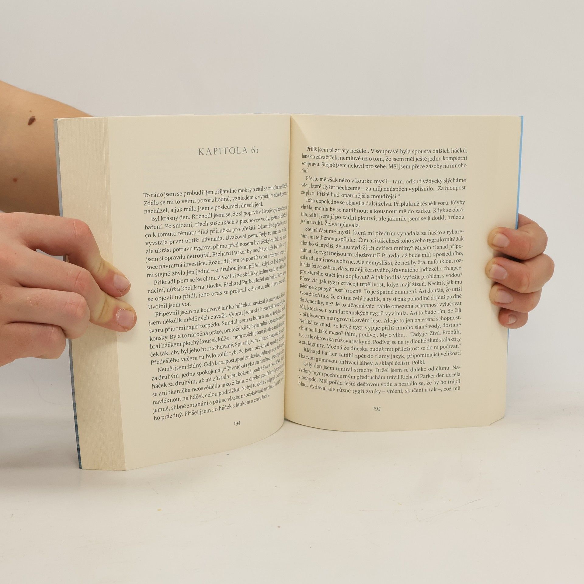 Pí, malý indický chlapec, se na lodi vydává na cestu napříč Tichým oceánem vstříc nové budoucnosti. Loď se potopí, pouze dva trosečníci svádějí u mexických břehů svůj boj o přežití. Darwinovský zákon je neúprosný a vyhrává jen ten nejsilnější. Kdo zvítězí tentokrát? Pí, anebo bengálský tygr Richard Parker? Kouzlo Martelova románu netkví ve čtenářově napětí, zda se chlapci povede zvítězit nad strašlivým zvířetem, ale způsob, jakým toho dosáhne. Kniha je plná návodů a popisů nejrůznějších námořnických a trosečnických dovedností. Pí postupně odhazuje civilizační návyky, stává se masožravcem, šelmou, která si musí vybojovat své místo, zvítězit nad tygrem a přemoci živly. Nestárnoucí neuvěřitelný příběh nepřestává uchvacovat i dnešní čtenáře.