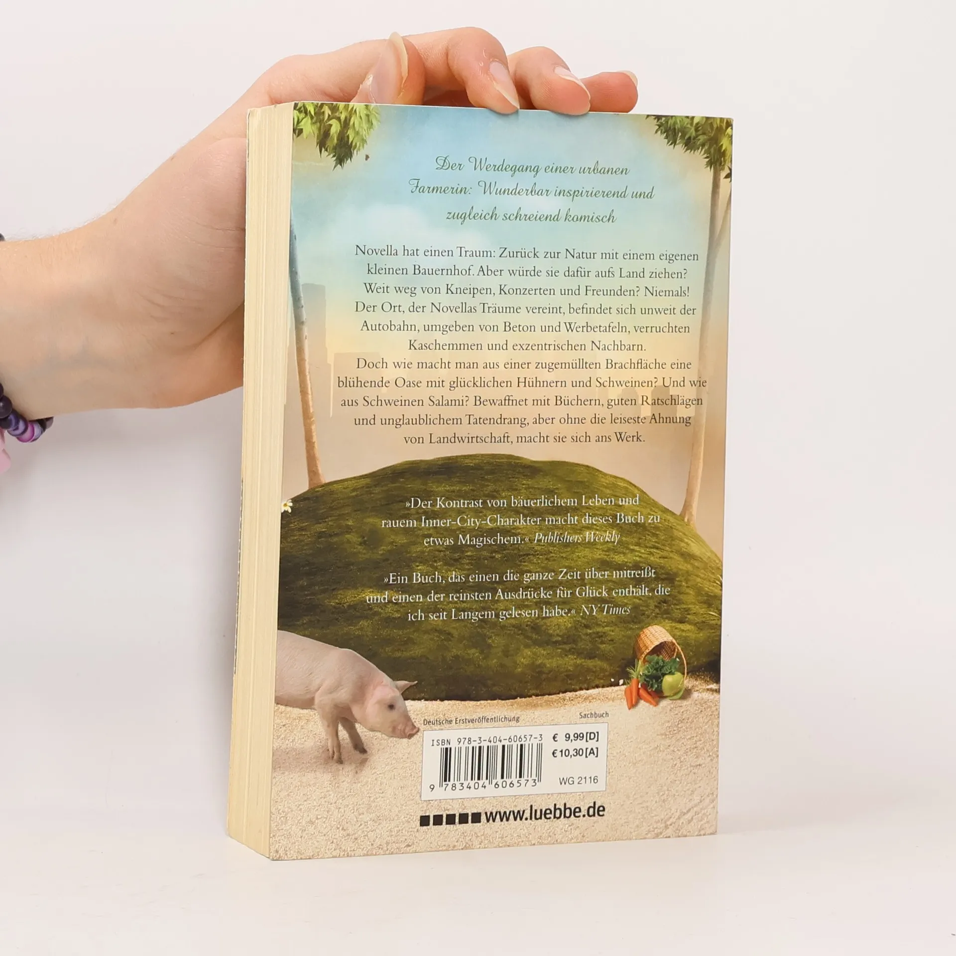 Brave urbane Schweine, die anstandslos die Reste vom China-Imbiss fressen. Die Truthähne Harold und Maude, die täglich ausreißen, um mit den Prostituierten von nebenan zu frohlocken. Obst und Gemüse im Überfluss, mit dem sich jeder die Plastiktüten vollstopfen darf - das ist Novellas Farm mitten in der Stadt. Novella hat ihren Traum wahr gemacht: Zurück zur Natur und zum bäuerlichen Leben ohne auf Kneipen, Konzerte und exzentrische Nachbarn verzichten zu müssen. Sie erzählt uns alles von Anfang an - von der Entdeckung eines zugemüllten Hinterhofs bis zur ihrer ersten stolzen Homemade-Salami-Party als echter Urban Farmer.