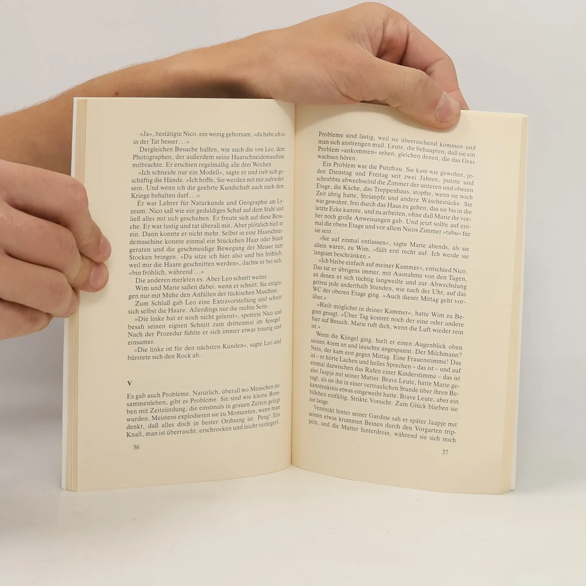 Wie viele ihrer Landsleute in den besetzten Niederlanden verstecken Wim und Marie in Zusammenarbeit mit der Widerstandsbewegung einen Juden. Nicco bekommt das unauffällige Vorderzimmer im ersten Stock, für alle Fälle wird noch ein Fluchtverschlag gezimmert. Trotz Lebensmittelrationierung und anderer kriegsbedingter Not, trotz Angst und Zittern finden die drei zusammen und kommen ganz gut miteinander zurecht. Sie freuen sich auf den Tag der Befreiung, an dem sie 'zu dritt, Arm in Arm' offen aus dem Haus treten werden. Nur, Nicco ist nicht mehr jung, eine dumme Erkältung wächst sich aus und führt zu seinem Tod. Wie entledigen sich Wim und Marie unter den Augen der deutschen Besatzer der Leiche eines rechtlosen Juden, ohne sich selbst und die Widerstandsbewegung zu gefährden? Eine bizarre Geschichte in der an Aberwitzigkeiten nicht armen Emigrantenliteratur. In ihren tragischen Aspekten erinnert die Novelle an Anne Franks Het Achterhuis, in ihren grotesken Momenten an Franz Werfels Jacobowsky und der Oberst.