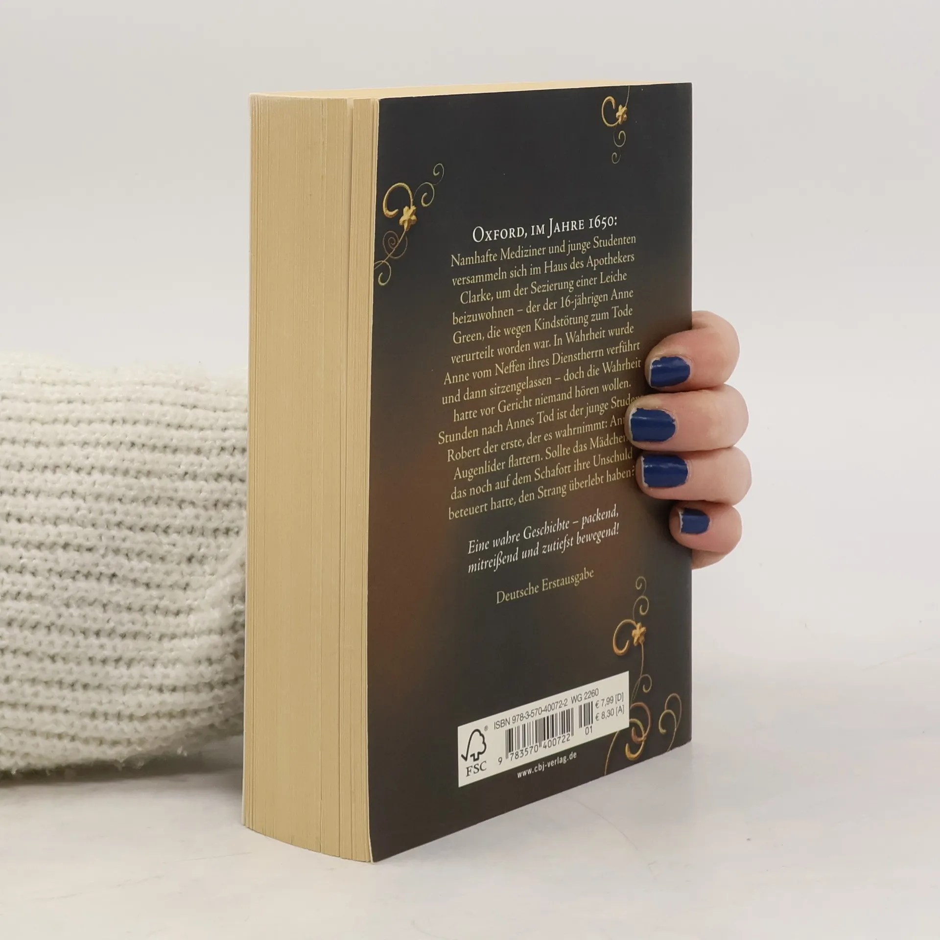 Packend, mitreißend und ungeheuer einfühlsam erzählt Oxford, im Jahre 1650: Namhafte Mediziner und junge Studenten versammeln sich im Haus des Apothekers Clarke, um der Sezierung einer Leiche beizuwohnen. Die Tote ist die sechzehnjährige Anne Green, die wegen Kindstötung zum Tod am Strang verurteilt und gehängt worden ist. In Wahrheit wurde Anne Green vom Neffen ihres Dienstherren verführt und dann sitzengelassen – doch die Wahrheit hatte vor Gericht niemand hören wollen. Stunden nach Annes Tod ist der junge Student Robert der erste, der es wahrnimmt: Anne Greens Augenlider flattern. Sollte das Mädchen, das noch auf dem Schafott seine Unschuld beteuert hatte, den Strang überlebt haben?