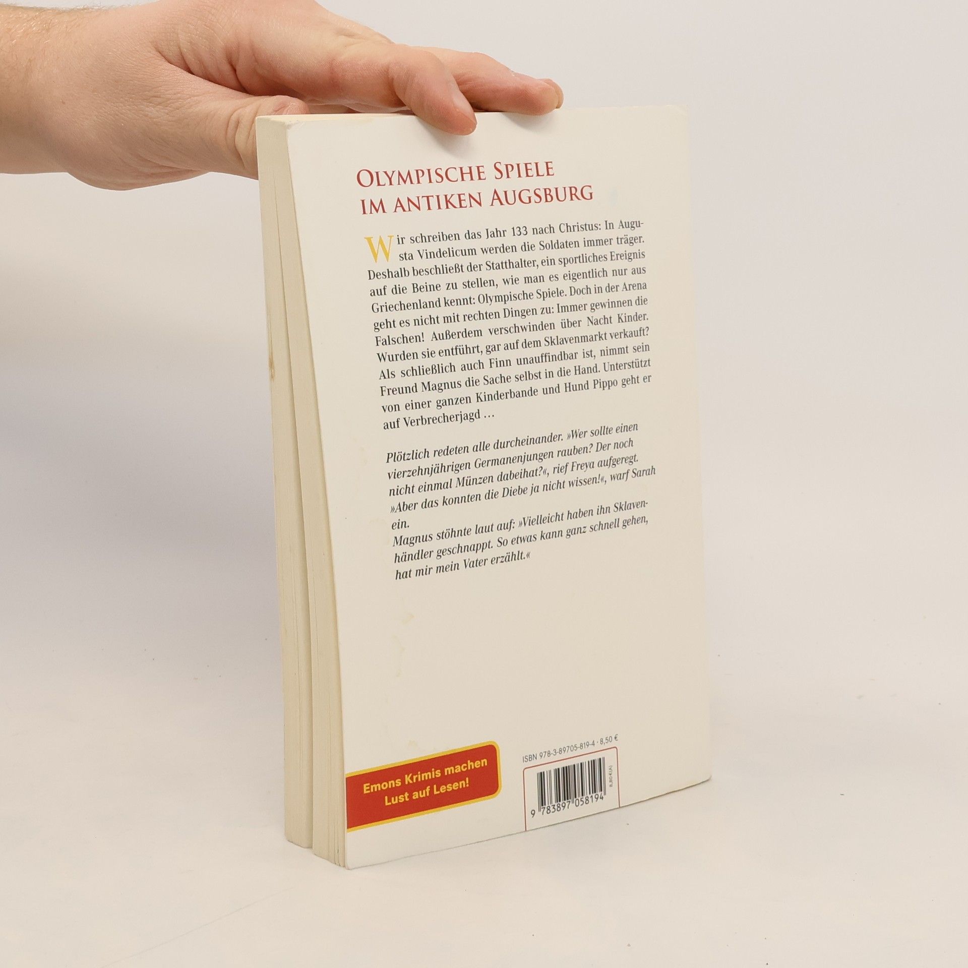 Wir schreiben das Jahr 134 nach Christus: In Augusta Vindelicum werden die Soldaten immer träger. Deshalb beschließt der Statthalter, ein sportliches Ereignis auf die Beine zu stellen, wie man es eigentlich nur von Griechenland kennt: Olympische Spiele. Doch in der Arena geht es nicht mit rechten Dingen zu. Immer gewinnen die Falschen! Außerdem verschwinden über Nacht Kinder. Wurden sie entführt? Auf dem Sklavenmarkt verkauft? Als schließlich auch Finn unauffindbar ist, nimmt sein Freund Magnus die Sache selbst in die Hand. Unterstützt von einer ganzen Kinderbande und Hund Pippo geht er auf Verbrecherjagd.