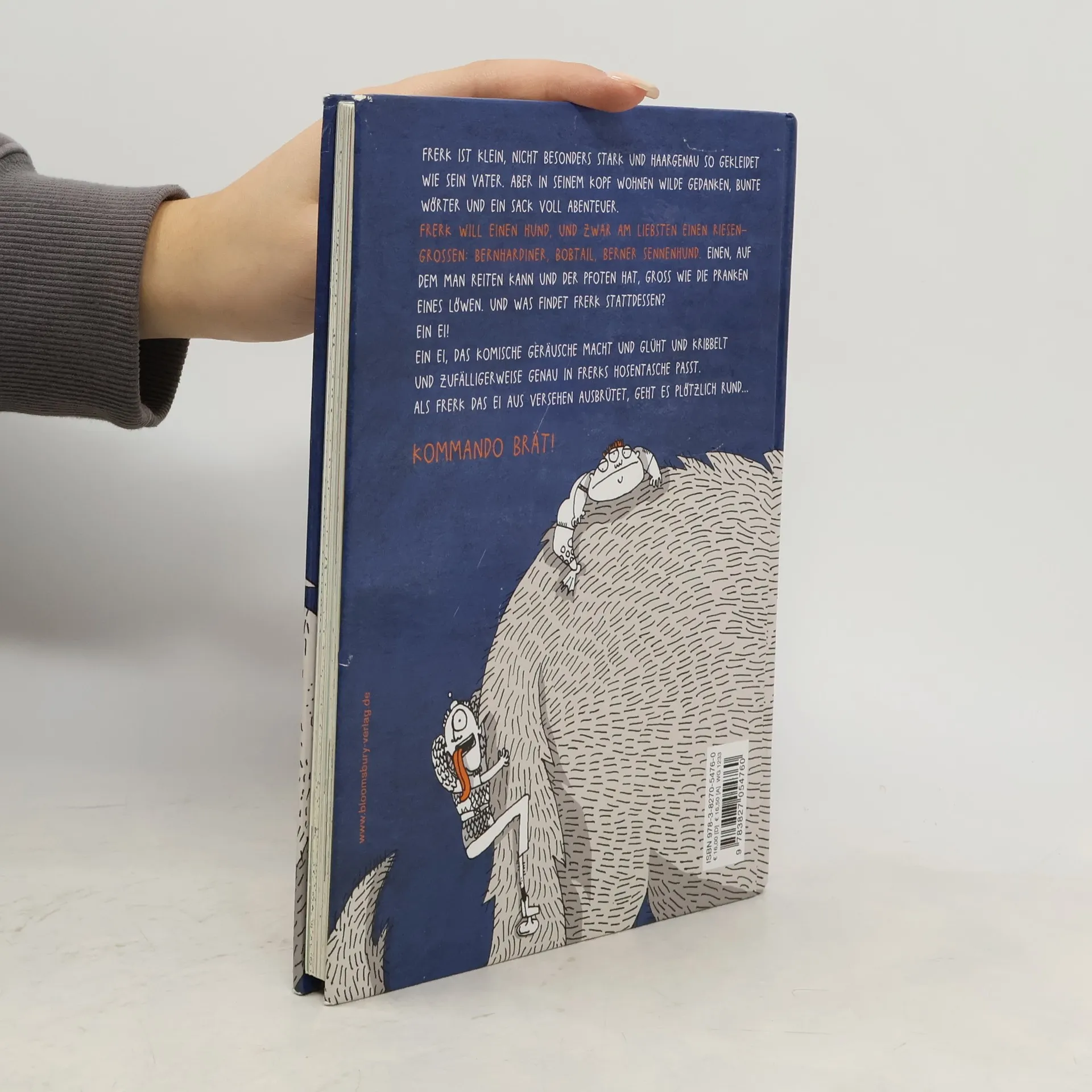 Frerk ist klein, nicht besonders stark und gekleidet wie sein Vater, der ein wortkarger Schuhverkäufer ist. Aber in seinem Kopf wohnen wilde Gedanken, bunte Wörter, er träumt von Abenteuern und zotteligen Hunden. Als Frerk ein seltsames Ei findet und aus Versehen in seiner Hosentasche ausbrütet, fühlt es sich eine Zeit lang so an, als ob sein Leben Anlauf nehmen würde. Denn die Truppe kleiner, merkwürdiger Gestalten, die eines Tages schlüpft, stellt ungefähr alles auf den Kopf und zeigt Frerk, dass es manchmal viel besser ist zu machen als nur zu träumen ...