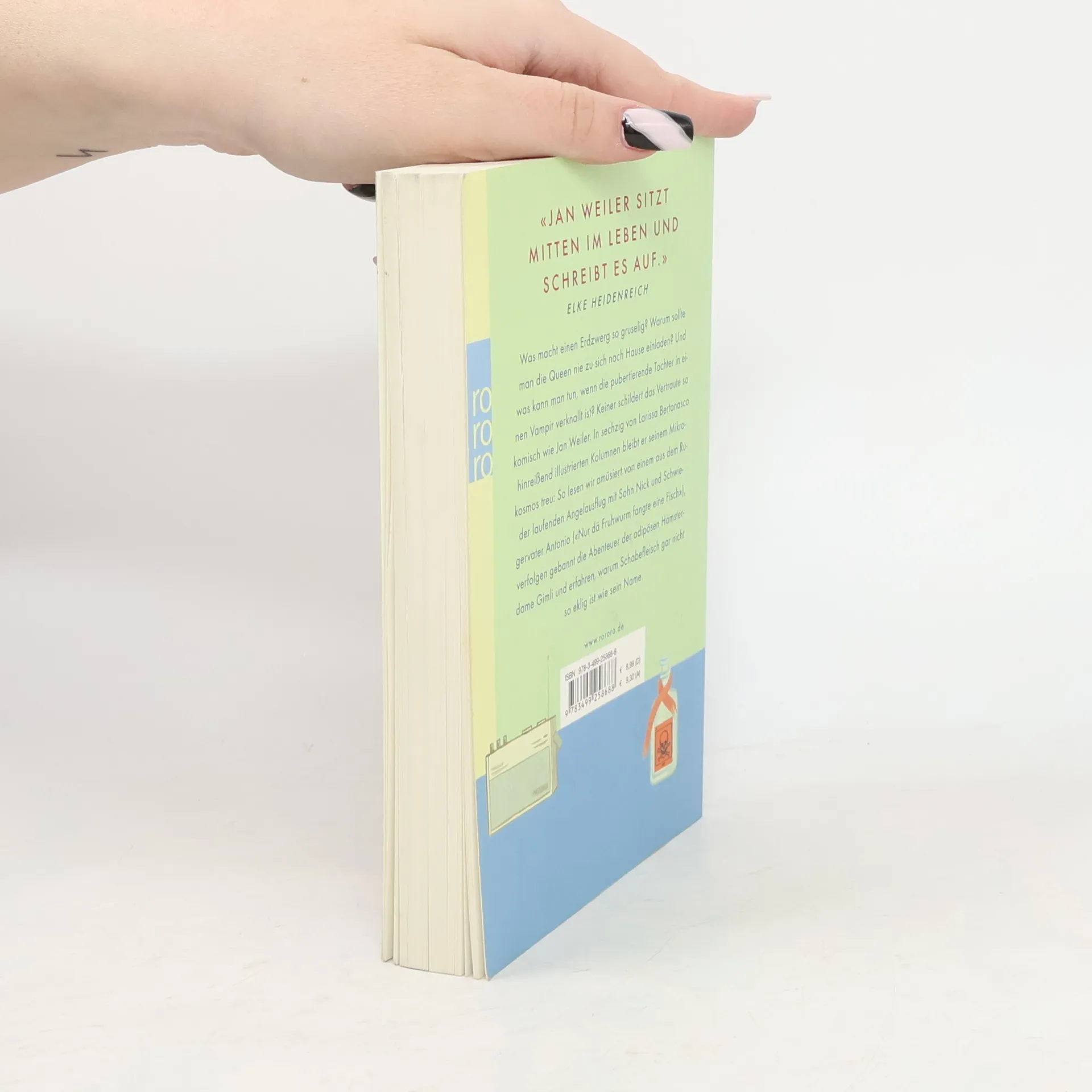 Was macht einen Erdzwerg so gruselig? Warum sollte man die Queen nie zu sich nach Hause einladen? Und was kann man tun, wenn die pubertierende Tochter in einen Vampir verknallt ist? Keiner schildert das Vertraute so komisch wie Jan Weiler. In sechzig von Larissa Bertonasco hinreißend illustrierten Kolumnen bleibt er seinem Mikrokosmos treu: So lesen wir amüsiert von einem aus dem Ruder laufenden Angelausflug mit Sohn Nick und Schwiegervater Antonio («Nur dä Fruhwurm fangte eine Fisch»), verfolgen gebannt die Abenteuer der adipösen Hamsterdame Gimli und erfahren, warum Schabefleisch gar nicht so eklig ist wie sein Name.