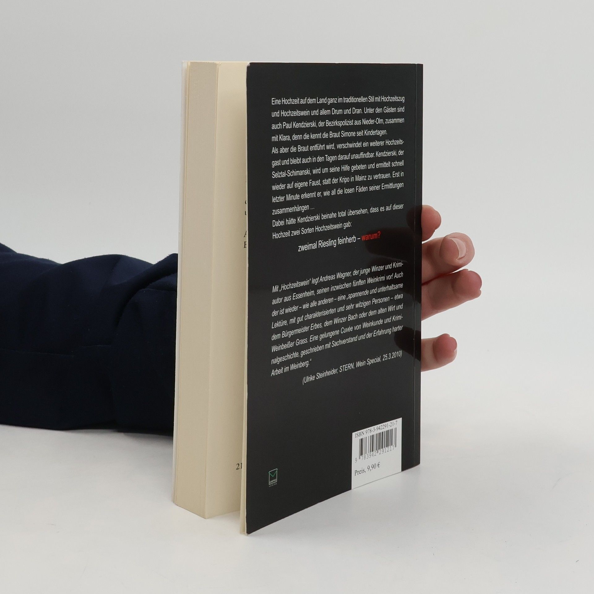 Eine Hochzeit auf dem Land ganz im traditionellen Stil mit Hochzeitszug und Hochzeitswein und allem Drum und Dran. Unter den Gästen sind auch Paul Kendzierski, der Bezirkspolizist aus Nieder-Olm, zusammen mit Klara, denn sie ist seit Kindertagen die beste Freundin der Braut Simone. Als aber die Braut entführt wird, verschwindet ein weiterer Hochzeitsgast und bleibt auch in den Tagen darauf unauffindbar. Kendzierski, der Selztal-Schimanski, wird um seine Hilfe gebeten und ermittelt schnell wieder auf eigene Faust, statt der Kripo in Mainz zu vertrauen. Erst in letzter Minute erkennt er, wie all die losen Fäden seiner Ermittlungen zusammenhängen ... Dabei hätte Kendzierski beinahe total übersehen, dass es auf dieser Hochzeit zwei Sorten Hochzeitswein gab: zweimal Riesling feinherb - warum? Andreas Wagner, Jg. 1974, ist als Winzer Quereinsteiger: Der promovierter Historiker führt das von den Eltern übernommene Weingut seit 2002 zusammen mit seinem Bruder Ulrich. Er ist verheiratet und hat drei Kinder. Seit 2006 schreibt er Weinkrimis.