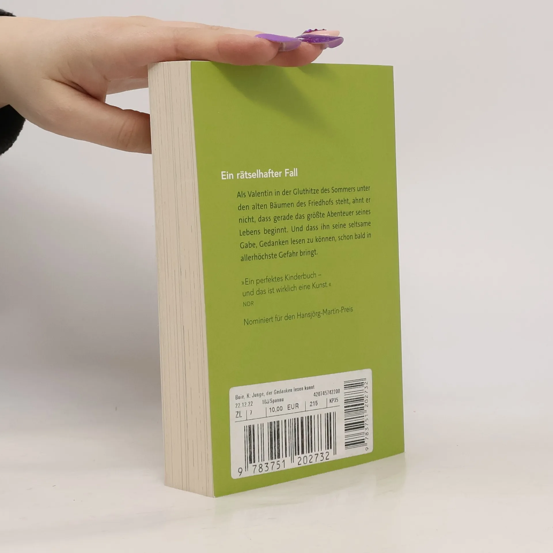 Spannung und Philosophie in einem poetischen Kinderkrimi von Kirsten Boie. Als Valentin in der Gluthitze dieses Sommers unter den alten Bäumen des Friedhofs steht, ahnt er nicht, dass gerade das größte Abenteuer seines Lebens beginnt. Denn hier fühlt er sich wohl. Und vielleicht findet er auch eine Antwort auf seine Frage nach dem Leben und dem Tod. Doch dann überschlagen sich die Ereignisse. Ist der Friedhofsgärtner Bronislaw ein ganz gemeiner Verbrecher? Was hat es mit den merkwürdigen Bildern im Kopf des unsympathischen Büromanns auf sich? Haben sie etwas mit den brutalen Überfällen auf Juweliergeschäfte zu tun? Tatsächlich bringt Valentin seine seltsame Gabe, Gedanken lesen zu können, in allergrößte Gefahr. Dies ist eine wunderbar leichte, poetische Geschichte von Kirsten Boie über Freundschaft und den Umgang mit Verlust und Trauer, gleichzeitig aber auch spannender Kinderkrimi und großes Abenteuer, farbig in Szene gesetzt von Regina Kehn.