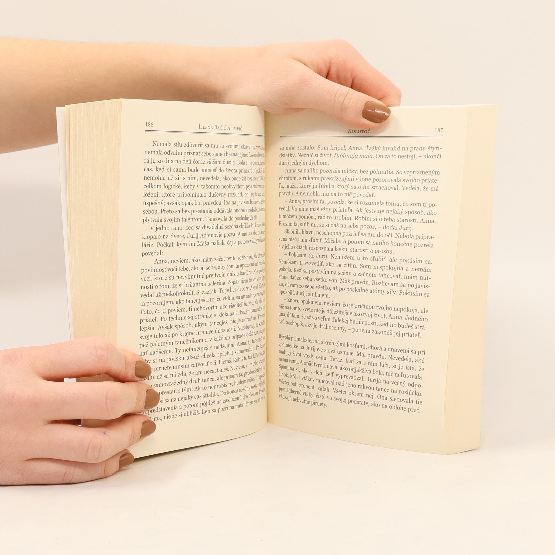 Autorka opisuje intímnu spoveď baleríny krehkého tela a obrovského ducha, ktorý zanechal stopu na všetkých veľkých baletných scénach. Je to príbeh o malých - veľkých ľuďoch, ľuďoch žijúcich na salaši, o umelcoch, básnikoch a ich múzach, o mestečkách, ránach, ktoré voňajú dulou, o nezabudnuteľných ruských zimách... Autorka nám na začiatku románu odhalí Annin príbeh, ale cez retrospektívu nás šikovne vedie jej životom, ktorý je pre čitateľa plný obratov a prekvapení - až po samotný koniec. Anna Balint je jednou z najobľúbenejších hrdiniek súčasnej srbskej literatúry. Román Kolotoč je silnou cyklickou metaforou života o dvoch tak blízkych, a predsa veľmi odlišných svetoch - Srbska a Ruska.