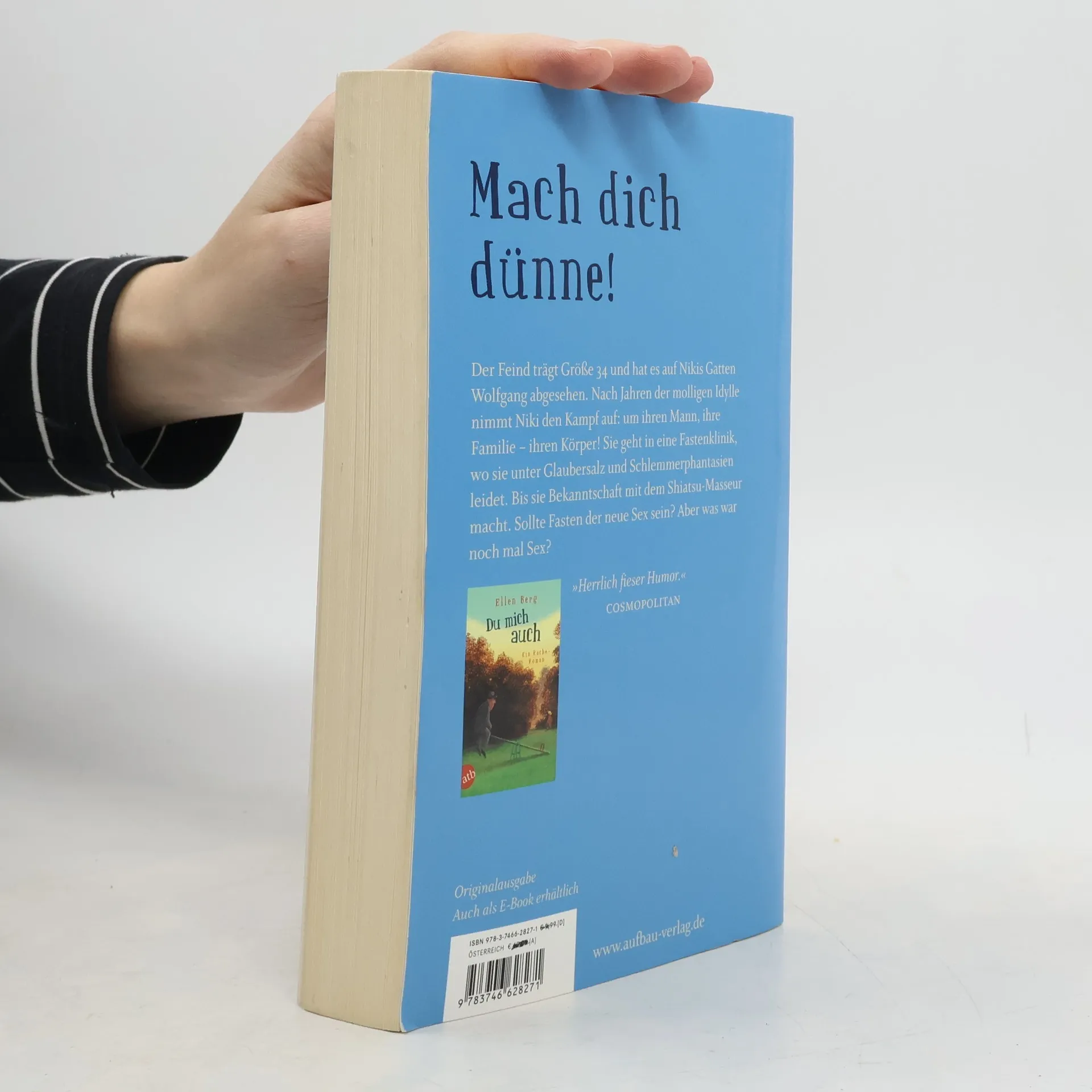 Mach dich dünne! Der Feind trägt Größe 34 und hat es auf Nikis Gatten Wolfgang abgesehen. Nach Jahren der molligen Idylle nimmt Niki den Kampf auf: um ihren Mann, ihre Familie – ihren Körper! Sie geht in eine Fastenklinik, wo sie unter Glaubersalz und Schlemmerphantasien leidet. Bis sie Bekanntschaft mit dem Shiatsu-Masseur macht. Sollte Fasten der neue Sex sein? Aber was war noch mal Sex? „Herrlich fieser Humor.“ Cosmopolitan