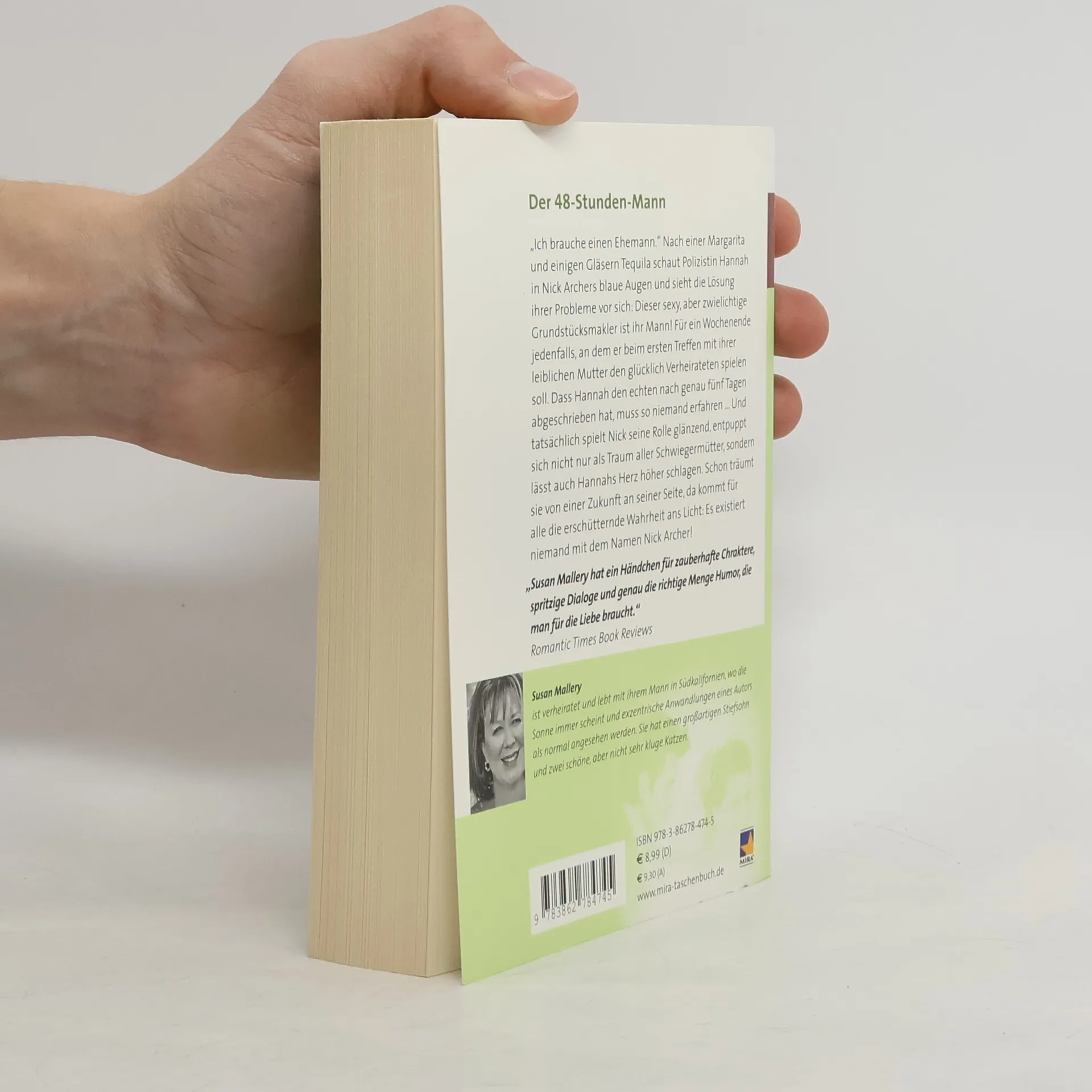 „Ich brauche einen Ehemann.“ Nach einem Margarita und einigen Gläsern Tequila schaut Polizistin Hannah in Nick Archers blaue Augen und sieht die Lösung ihrer Probleme vor sich: Dieser sexy, aber zwielichtige Grundstücksmakler ist ihr Mann! Für ein Wochenende jedenfalls, an dem er beim ersten Treffen mit ihrer Mutter den glücklich Verheirateten spielen soll. Dass Hannah den echten nach genau fünf Tagen abgeschrieben hat, muss so niemand erfahren … Und tatsächlich spielt Nick seine Rolle glänzend, entpuppt sich nicht nur als Traum aller Schwiegermütter, sondern lässt auch Hannahs Herz höher schlagen. Schon träumt sie von einer Zukunft an seiner Seite, da kommt für alle die erschütternde Wahrheit ans Licht: Es existiert niemand mit dem Namen Nick Archer! Deutsche Erstveröffentlichung