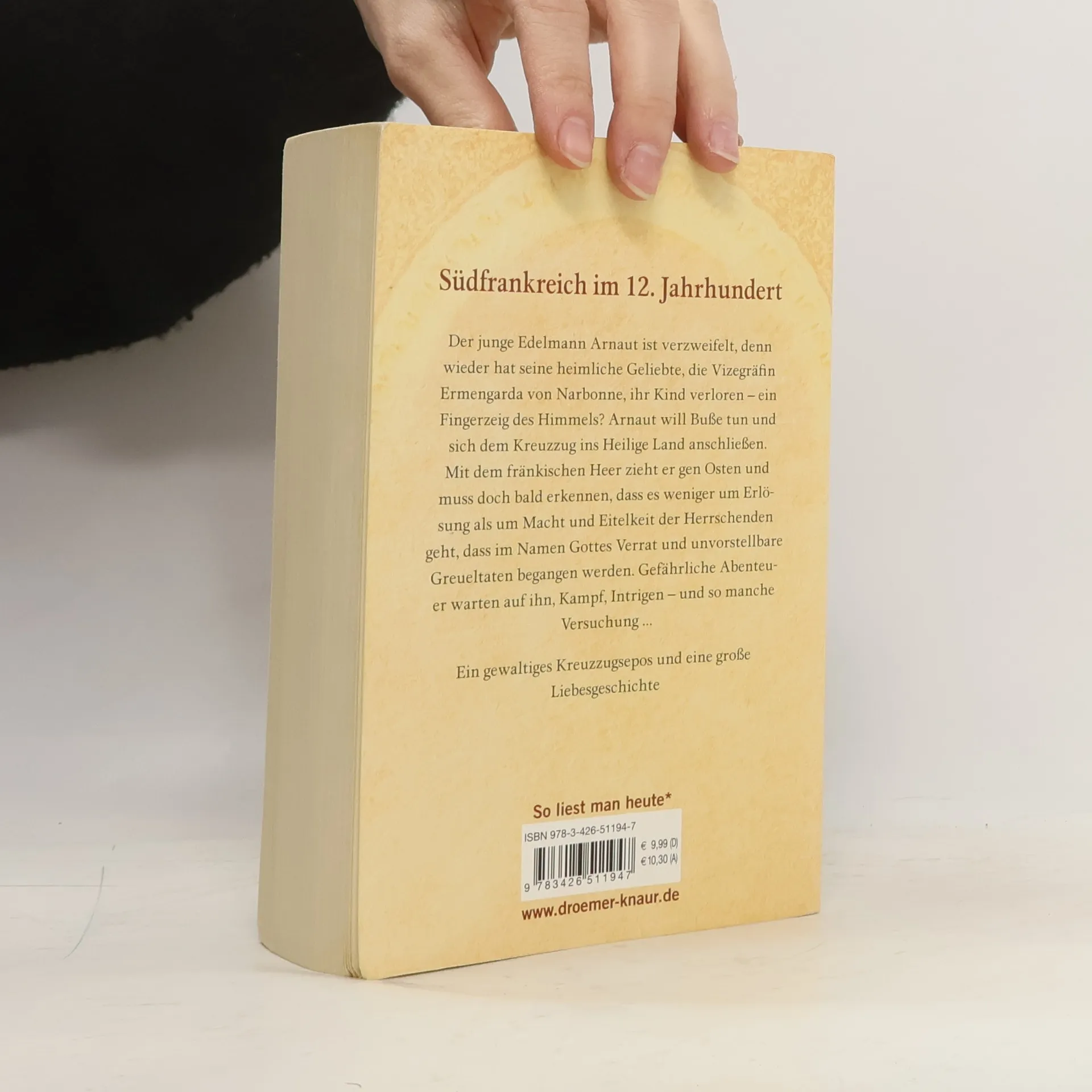 Südfrankreich im 12. Jahrhundert: Der junge Edelmann Arnaut ist verzweifelt, denn wieder hat seine heimliche Geliebte, die Vizegräfin Ermengarda von Narbonne, ihr Kind verloren – ein Fingerzeig des Himmels? Arnaut will Buße tun und sich dem Kreuzzug ins Heilige Land anschließen. Mit dem fränkischen Heer zieht er gen Osten und muss doch bald erkennen, dass es weniger um Erlösung als um Macht und Eitelkeit der Herrschenden geht, dass im Namen Gottes Verrat und unvorstellbare Gräueltaten begangen werden. Gefährliche Abenteuer warten auf ihn, Kampf, Intrigen – und so manche Versuchung …