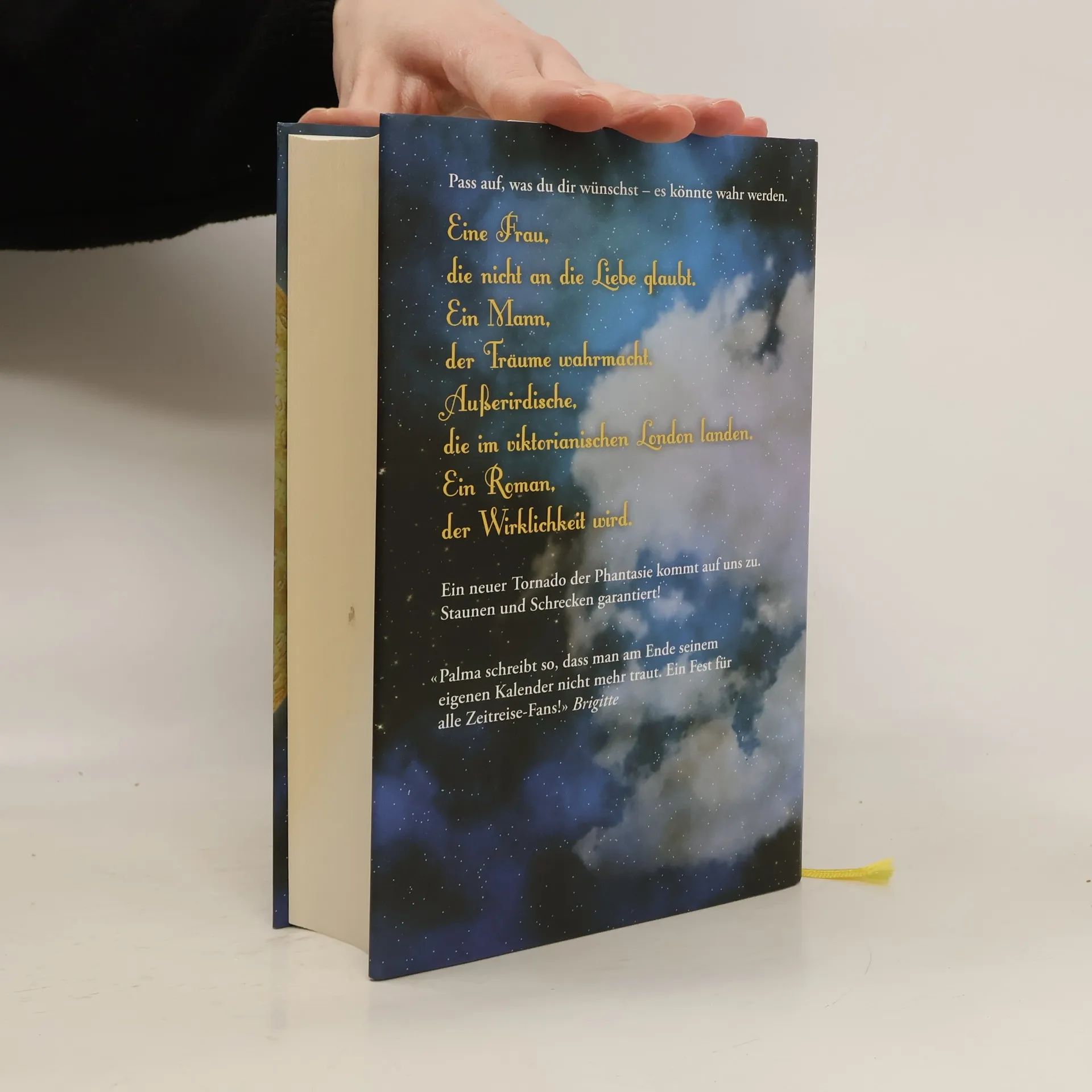 Gibt es eine Zivilisation im All, die intelligenter und glücklicher ist als wir Menschen? Eine Expedition in die Antarktis trifft im Jahr 1829 auf der Suche nach dem Eingang zum Mittelpunkt der Erde auf ein Wesen von einem anderen Stern. Sechzig Jahre später will der Millionär Gilmore das Herz der hübschen Emma erobern. Doch Emma kann sich nur in einen Mann verlieben, der sie zum Träumen bringt, wie einst ihr Urgroßvater, der ihr eine «Landkarte des Himmels» mit vielen phantastischen Wesen zeichnete. Emma verlangt von Gilmore, für sie eine Invasion von Marsmenschen zu inszenieren, so wie sie H. G. Wells in seinem Roman «Krieg der Welten» beschrieben hat. Der Millionär will der Angebeteten jeden Wunsch erfüllen und bittet den Schriftsteller um Hilfe. Dabei stellt sich heraus, dass Gilmore niemand anderer ist als Murray, der Impresario des Zeitreiseunternehmens aus «Die Landkarte der Zeit», der unter einer neuen Identität in New York lebt. Am 1. August landen die Außerirdischen in London. Aber es sind die echten. Und sie zerstören alles, was ihnen in den Weg kommt. Was tun, wenn Wünsche in Erfüllung gehen und zu Albträumen werden? Wer kann die Erdbewohner retten? Im zweiten Teil der Trilogie jagt uns Félix J. Palma wieder durch ungeheuerliche Parallelwelten und schickt uns auf abenteuerliche Zeitreisen. Eine neue Hommage an die Liebe und die Literatur, auf Erden und im All!