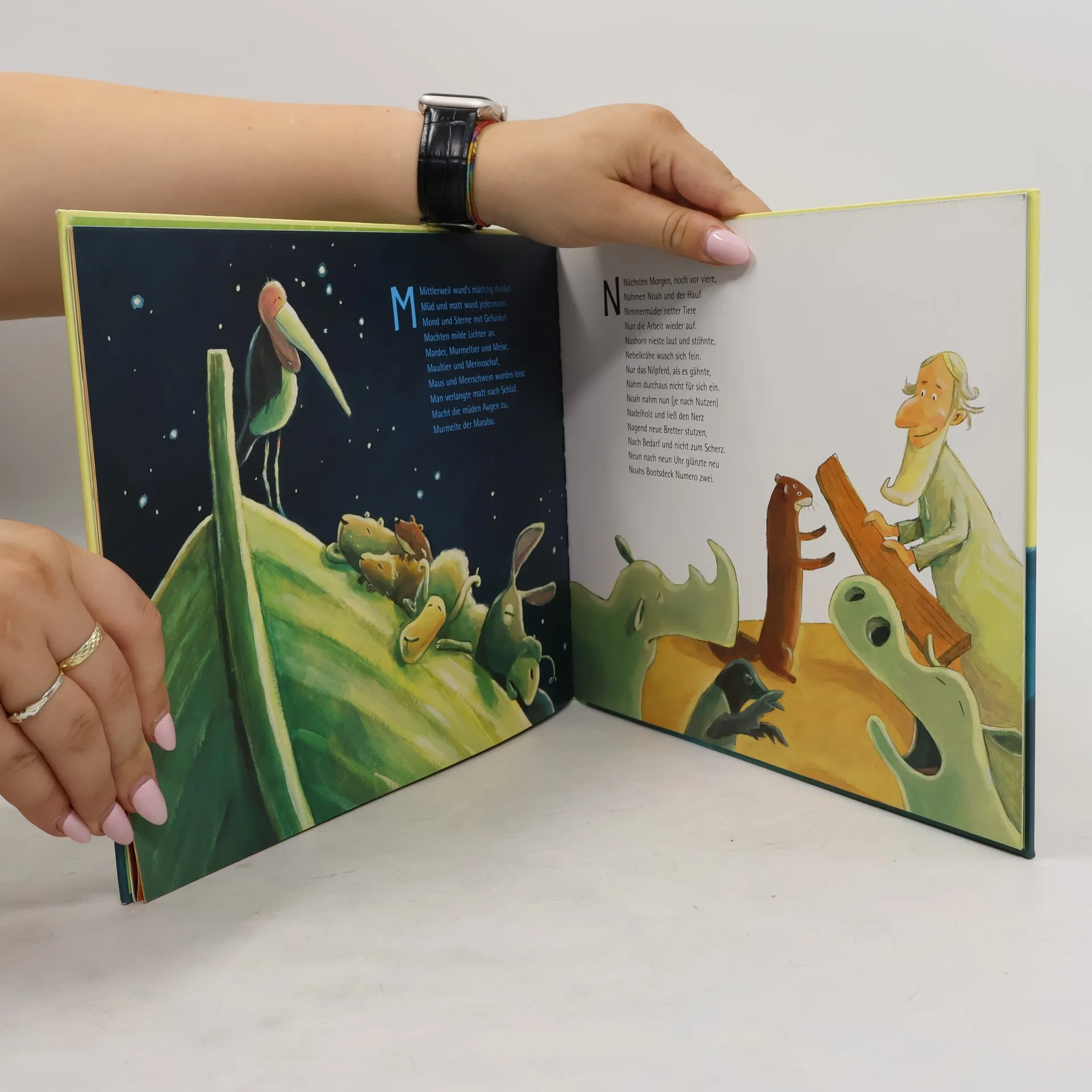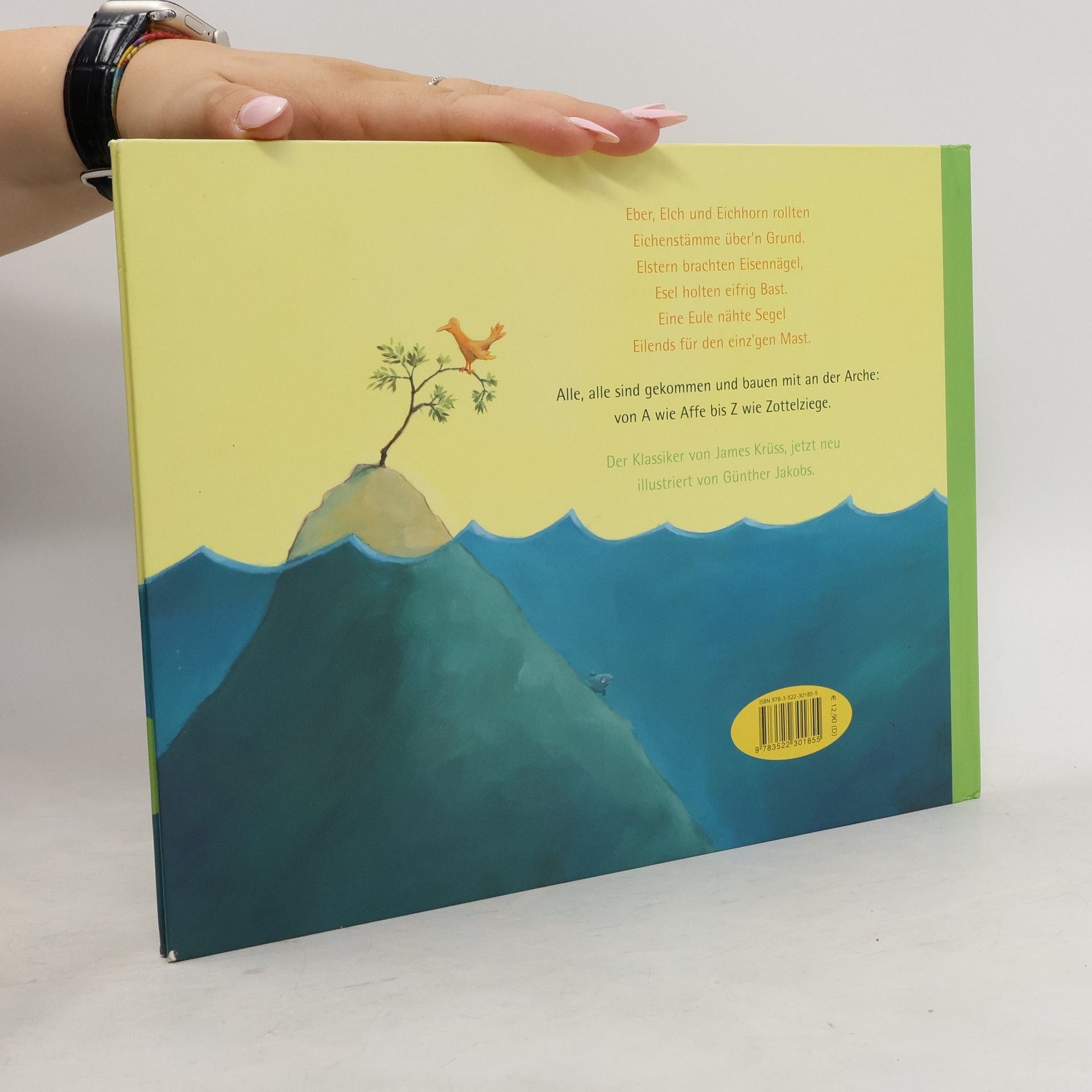 Eber, Elch und Eichhorn rollten Eichenstämme übern Grund. Elstern brachten Eisennägel, Esel holten eifrig Bast. Eine Eule nähte Segel Eilendsfür den einz´gen Mast. Alle, alle sind gekommen und bauen mit an der Arche: von A wie Affe bis Z wie Zottelziege. Der Klassiker von James Krüss, jetzt neu illustriert von Günther Jakobs. Ab 4 Jahren