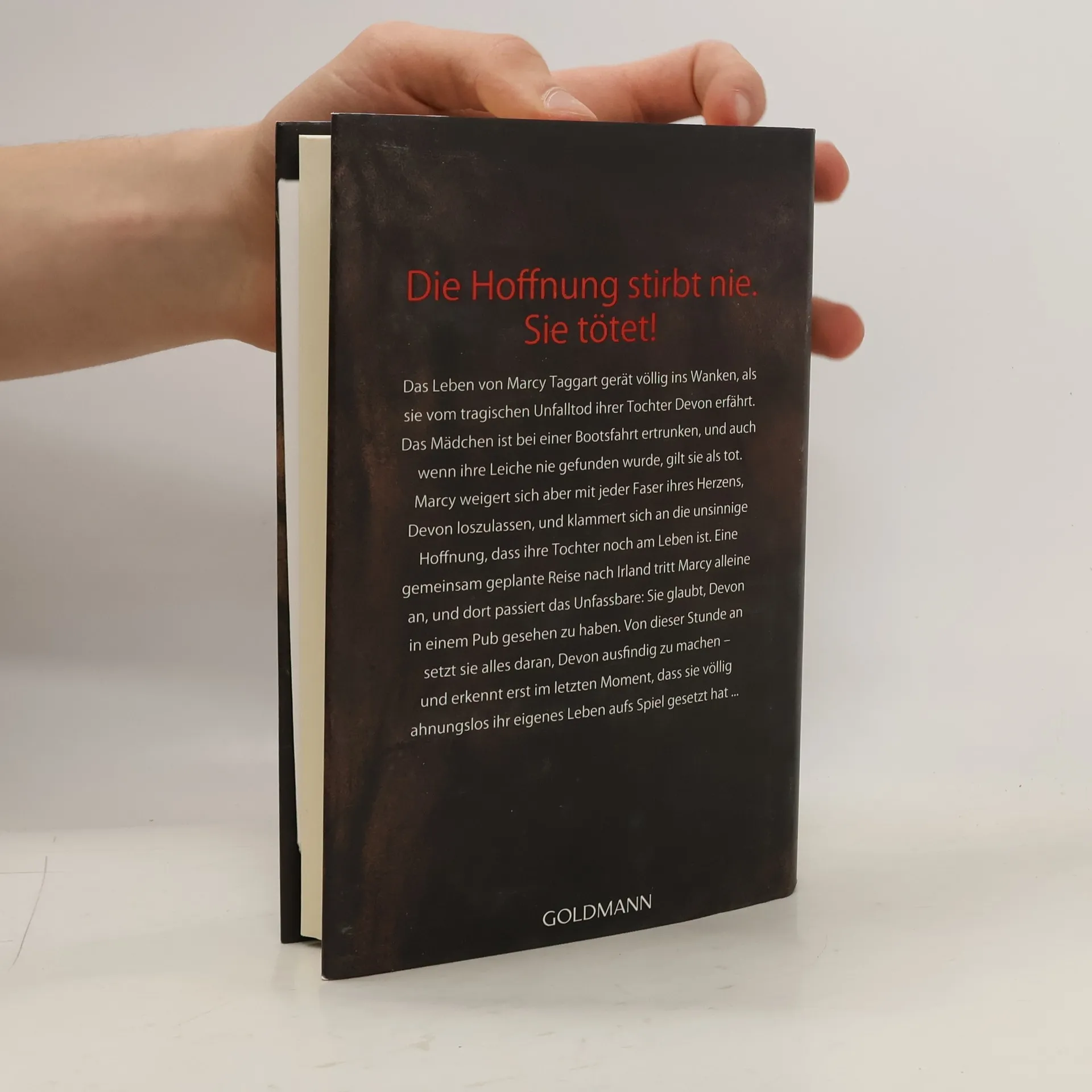 Die Hoffnung stirbt nie. Sie tötet Marcy Taggart, die in Toronto lebt, hat schwere Zeiten hinter sich. Zwei Jahre zuvor ertrank ihre Tochter Devon unter rätselhaften Umständen. Obwohl die Leiche nie auftauchte, gilt Devon als tot, doch Marcy klammert sich an die irreale Überzeugung, dass ihre Tochter eines Tages zu ihr zurückkehrt. Als ihr Mann Peter sie dann auch noch verlässt, hat Marcy nichts mehr, worauf sie noch vertrauen kann im Leben. Dennoch entschließt sie sich, die gemeinsam geplante Reise nach Irland alleine anzutreten. Und dort geschieht etwas Unfassbares, denn sie glaubt, in einem Pub in Cork die Silhouette ihrer Tochter gesehen zu haben. Marcy mietet sich in einer kleinen Pension ein, besessen von dem Gedanken, Devon endlich zu finden. Doch während sie noch damit beschäftigt ist, widersprüchlichen Hinweisen zu folgen, wird ihr Zimmer völlig verwüstet. Hat sie einen unsichtbaren Feind, der verhindern will, dass sie dem rätselhaften Schicksal ihrer Tochter auf den Grund kommt? Noch kann Marcy nicht ahnen, dass sie in Geschehnisse verwickelt werden wird, die sie fast das Leben kosten.