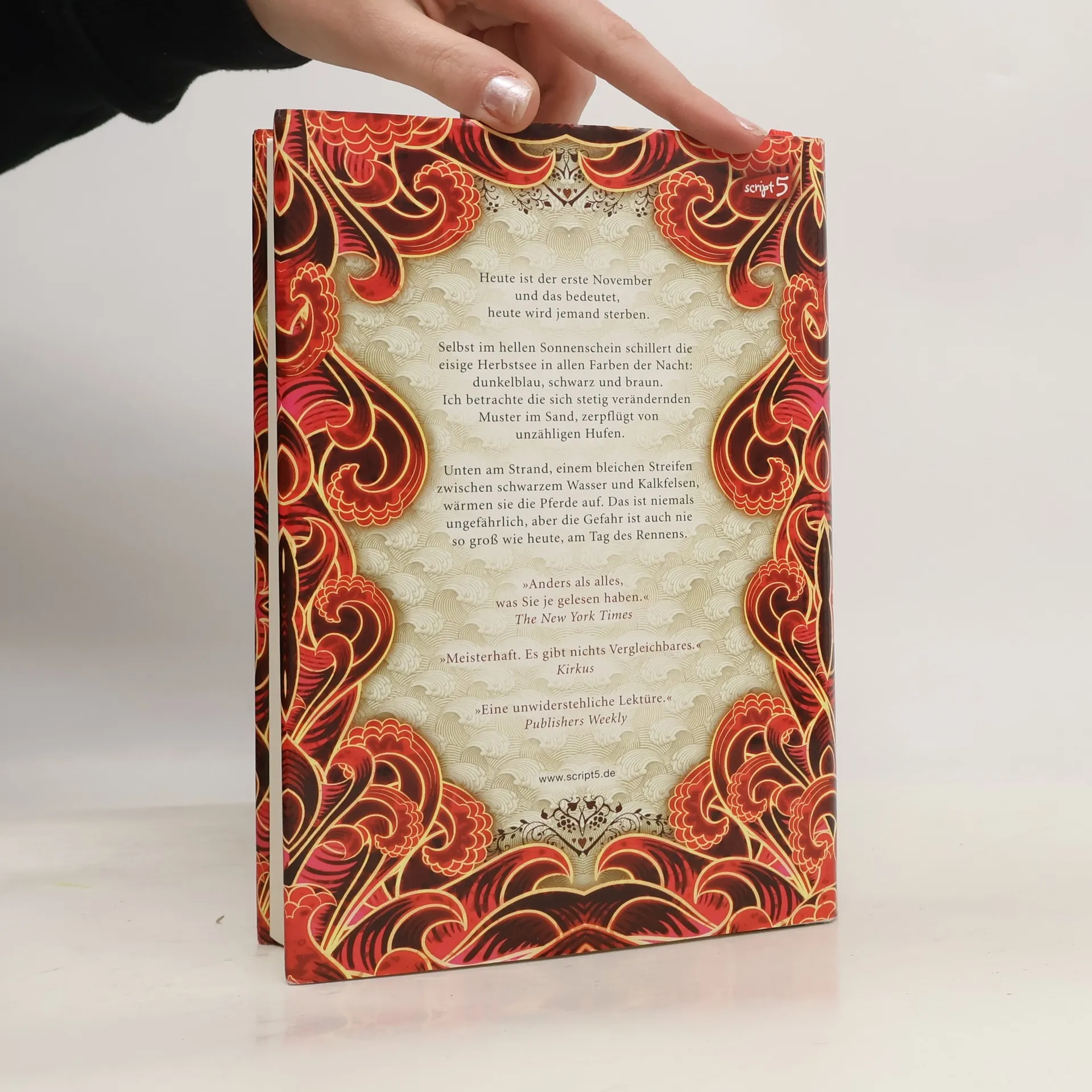 Jedes Jahr im November wird die Insel Thisby von Capaill Uisce heimgesucht, Meereswesen, die in Gestalt wunderschöner Pferde Tod und Verderben bringen. Schnell wie der Seewind und tückisch wie das Meer, ziehen sie die Menschen in ihren Bann.Wie viele junge Männer der Insel fiebert auch Sean Kendrick dem Skorpio-Rennen entgegen, bei dem sie auf Capaill Uisce gegeneinander antreten. Nicht wenige bezahlen dafür mit ihrem Leben.Das diesjährige Rennen aber wird sein wie keines zuvor: Als erste Frau wagt Puck Connolly, sich einen Platz in dieser Männerwelt zu erkämpfen. Sie gewinnt den Respekt von Sean Kendrick, der ihr anfangs widerwillig, dann selbstlos hilft. Schließlich fällt der Startschuss und auch diesmal erreichen viele Reiter nicht das Ziel.Ihr Blut und das ihrer Capaill Uisce färben die Wellen des Meeres rot … Mehr Infos zu Buch und Autorin unter:www. maggiestiefvater. de