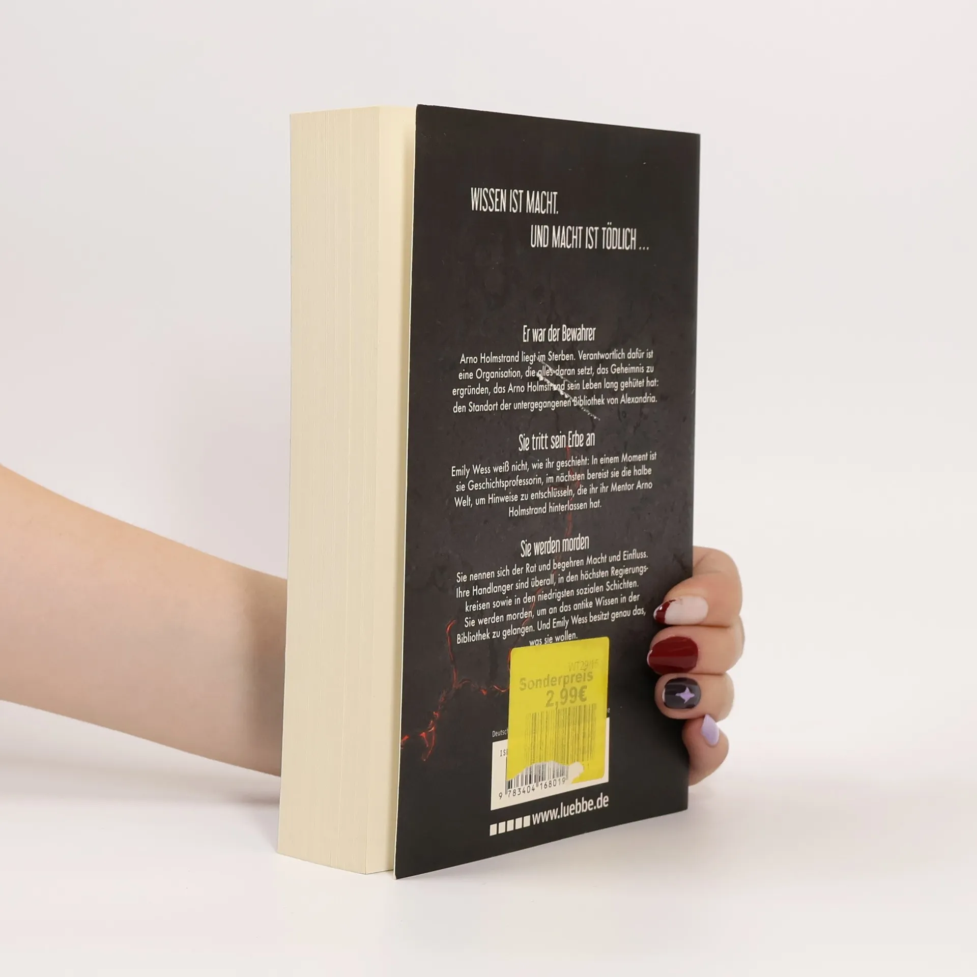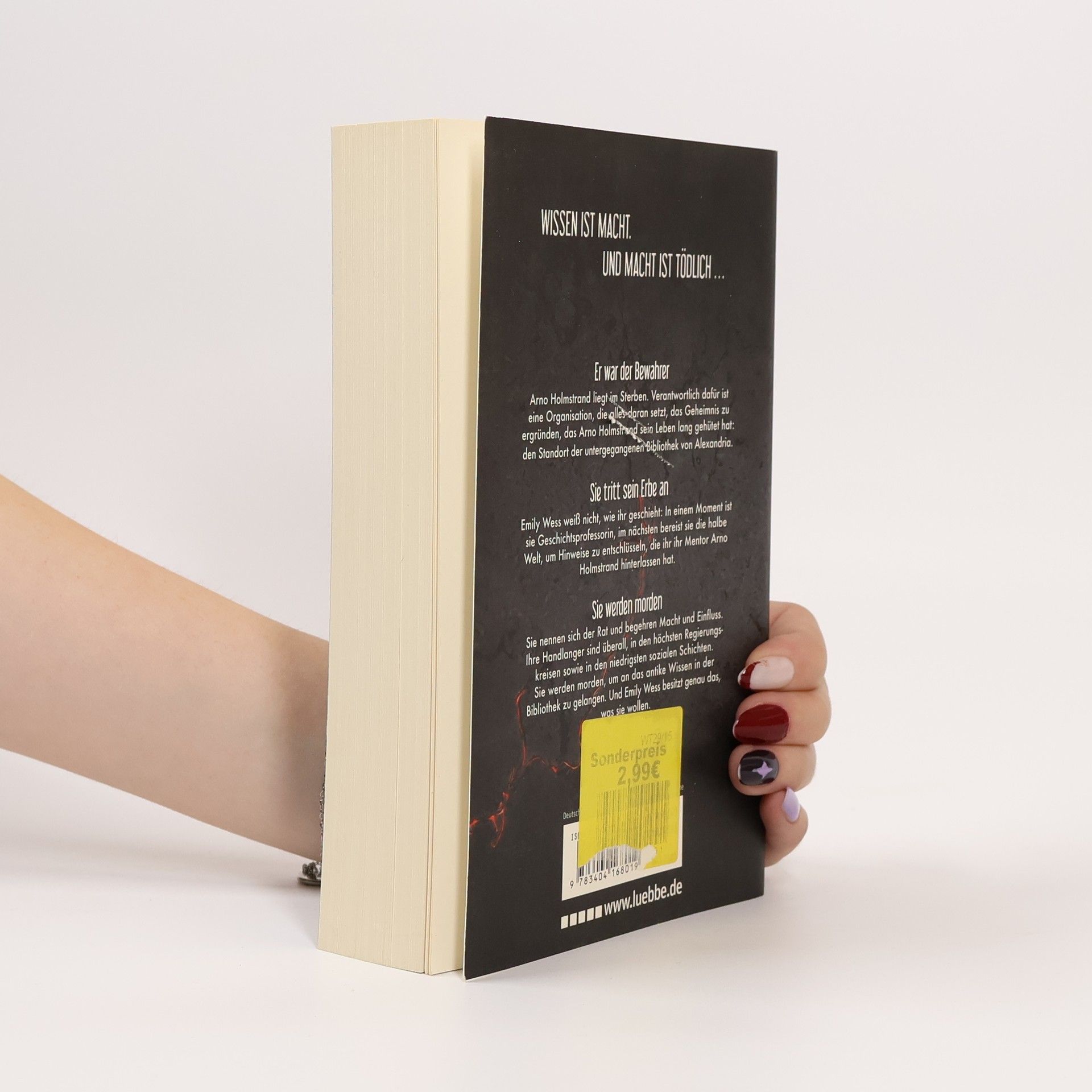 Er war der Bewahrer. Arno Holmstrand liegt im Sterben. Sein Leben lang hat er ein Geheimnis gehütet: den Standort der untergegangenen Bibliothek von Alexandria. Sie tritt sein Erbe an. Emily Wess war Geschichtsprofessorin. Nun bereist sie die halbe Welt, um Hinweise zu entschlüsseln, die ihr ihr Mentor Arno Holmstrand hinterlassen hat. Sie werden morden. Sie nennen sich der Rat und begehren Macht und Einfluss. Ihre Handlanger sind überall. Sie werden morden, um an das antike Wissen in der Bibliothek zu gelangen. Und Emily Wess besitzt genau das, was sie wollen.