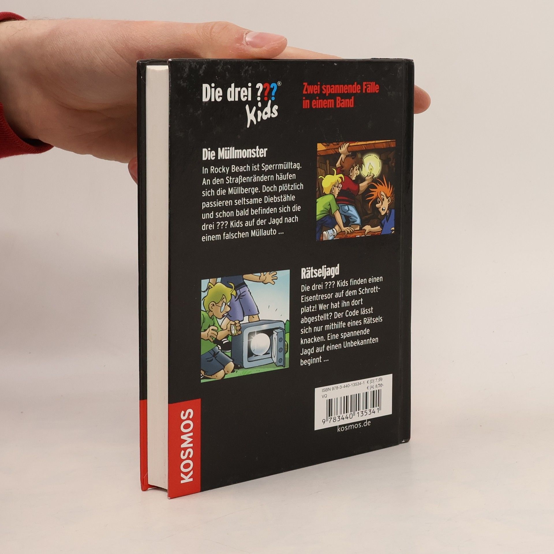Zwei spannende Abenteuer in einem Band: „Die Müllmonster“ und “Rätseljagd”. Die Müllmonster: In Rocky Beach ist Sperrmülltag. An den Straßenrändern häufen sich die Müllberge. Doch plötzlich passieren seltsame Diebstähle und schon bald befinden sich die drei ??? auf der Jagd nach einem falschen Müllauto. Rätseljagd: Die drei ??? finden einen Eisentresor auf dem Schrottplatz! Wer hat ihn dort abgestellt? Der Code lässt sich nur mithilfe eines Rätsels knacken. Eine spannende Jagd auf einen Unbekannten beginnt.