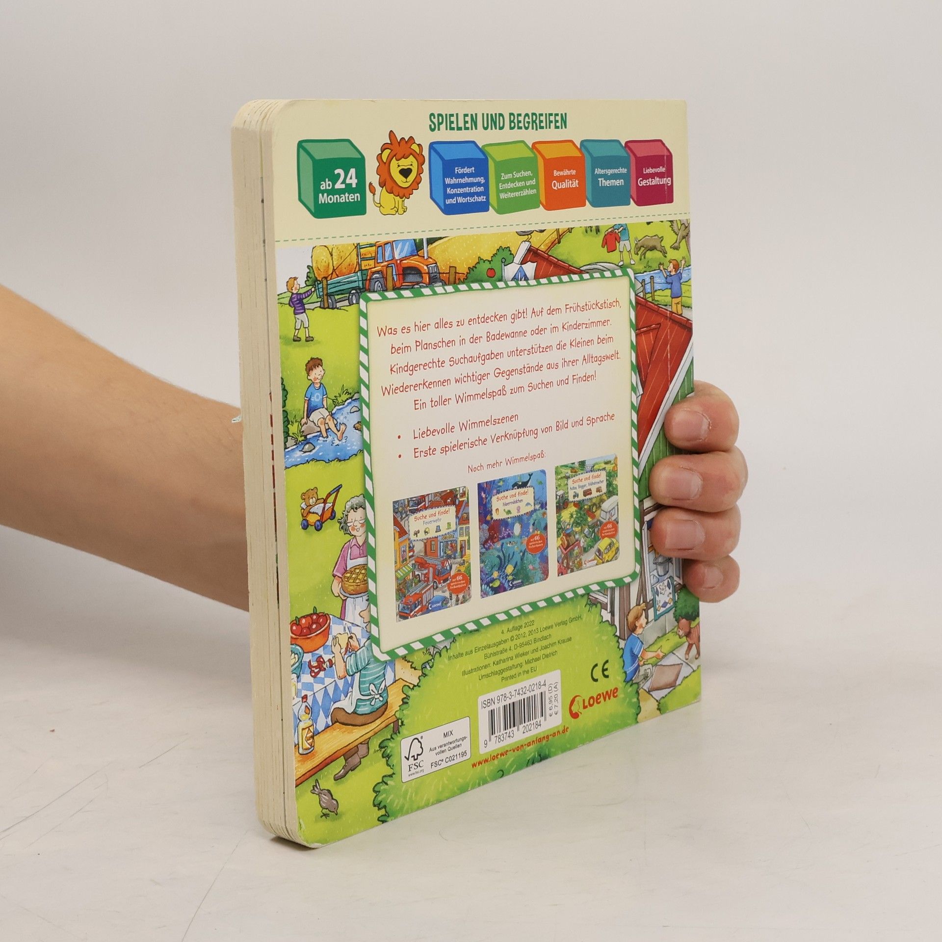 Das Buch ist bei deiner Buchhandlung vor Ort und bei vielen Online-Buchshops erhältlich! Toll, was es hier alles zu entdecken gibt! Auf dem Frühstückstisch, beim Planschen in der Badewanne oder im Kinderzimmer. Kindgerechte Suchaufgaben unterstützen die Kleinen beim Wiedererkennen wichtiger Gegenstände aus ihrer Alltagswelt. Nanu, wer stiehlt denn da die Wurst vom Teller? Ein toller Wimmelspaß zum Suchen und Finden! - Liebevolle Wimmelszenen aus der Alltagswelt des Kleinkindes - Erste spielerische Verknüpfung von Bild und Sprache - Förderung der Konzentrationsfähigkeit Dieses Pappbilderbuch bietet Suchspaß zum Entdecken und Wiedererkennen von Sachen aus der kindlichen Erfahrungswelt und unterstützt so den Spracherwerb von Kleinkindern.