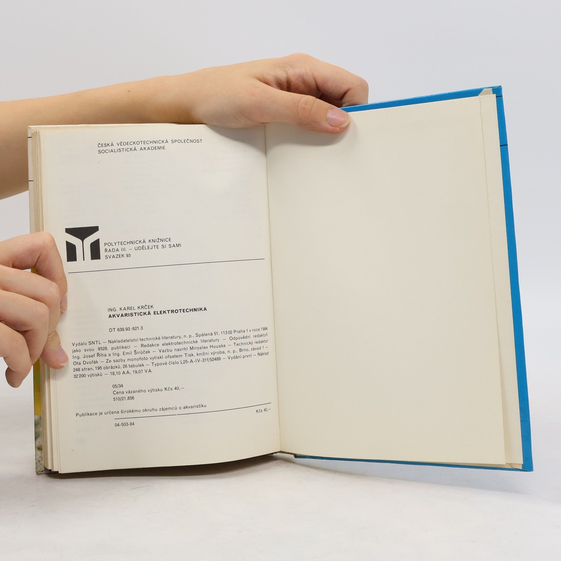 Publikace se věnuje té oblasti akvaristické techniky, která souvisí a elektrotechnikou. Jsou zde probrány základní elektrotechnické výpočty,problematika osvětlování, vytápění a vzduchování akvária včetně výroby ozónu. Kniha obsahuje také praktické návody elektrických rozvodů. Kapitoly: Co má vědět akvarista o elektrotechnice, Osvětlení nádrží, Vytápění nádrží, Vzduchování a vzduchovací zařízení, Výroba a použití ozónu v akvaristice, Elektrický rozvod ve stojanech.