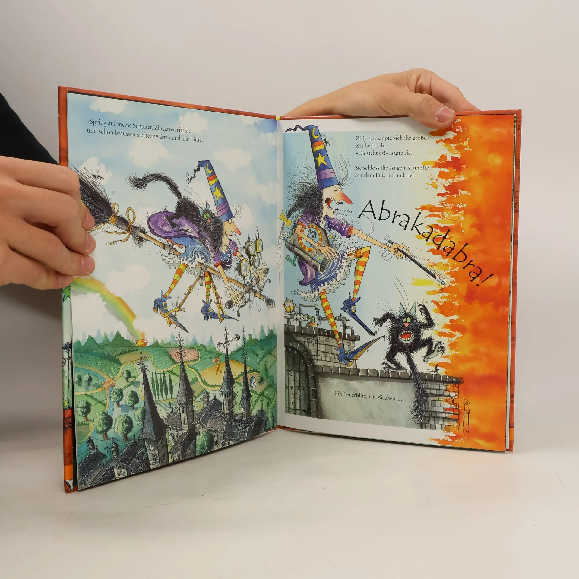 Zu gerne wüsste Zilly, die Zauberin, wie so ein Triceratops in echt ausgesehen haben mag ... Zusammen mit ihrem Kater Zingaro schaut sie sich im Museum am liebsten den Saal mit den Dinosaurier-Skeletten an. Eines Tages veranstalten die Museumsleute ein Preisausschreiben: Wer malt den Dinosaurier, der am echtesten aussieht? Kurzentschlossen begibt sich die unternehmungslustige Zilly auf Feldforschung. Sie schwenkt ihren Zauberstab – und plötzlich sieht sich der entsetzte Zingaro Aug in Auge mit einem riesigen, echten Dinosaurier ...