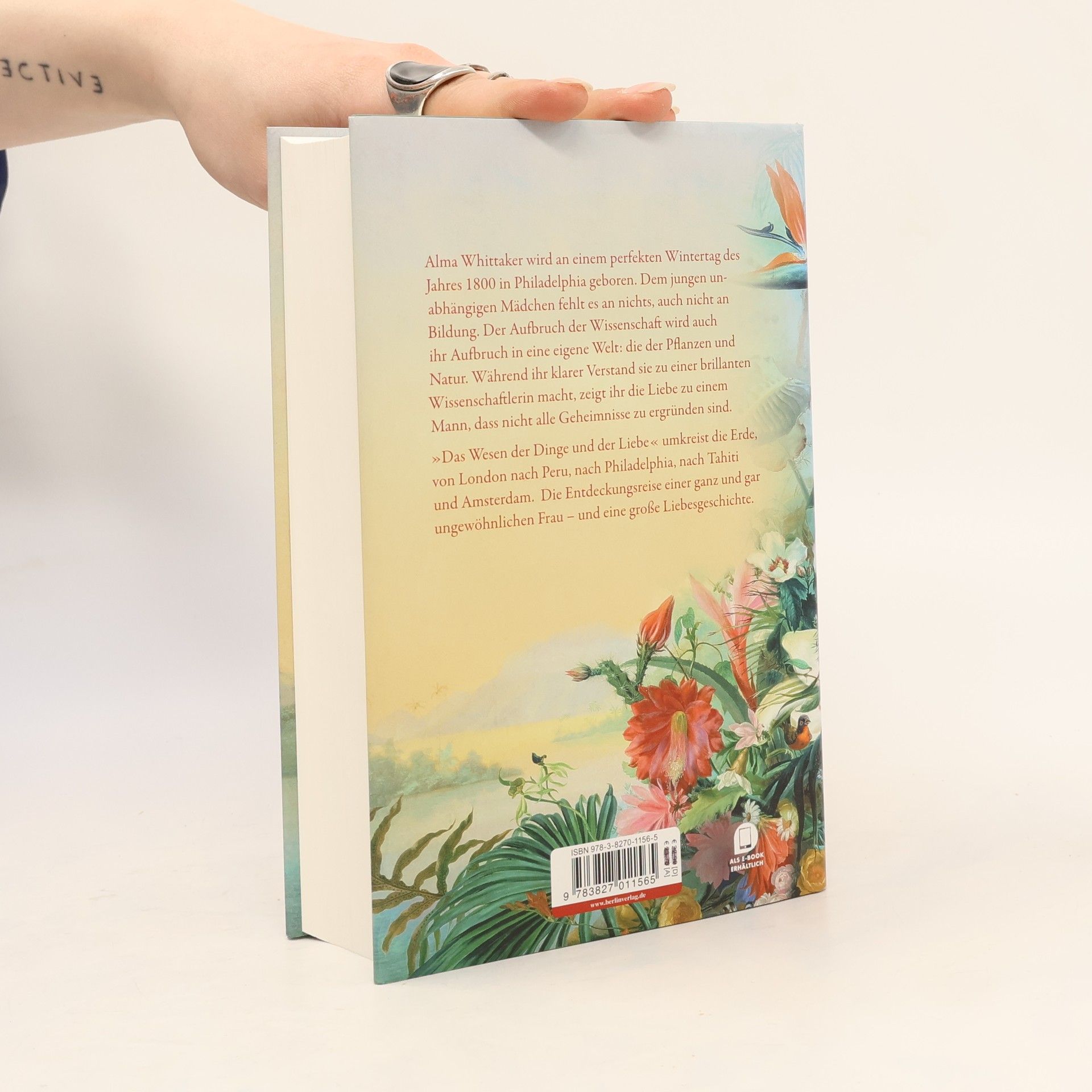 Am Ende ihres Lebens wird Alma auf ein großes Jahrhundert zurückblicken. Sie wird in die Aufbruchsphase Amerikas geboren, die Welt wird erforscht und erobert, Altes durch Neues abgelöst. Ihr umtriebiger Vater ist mit Pflanzenhandel reich geworden und der jungen Alma wird es an nichts fehlen, auch nicht an Bildung. Und so wächst sie zwischen den Pflanzen der prächtigen Gewächshäuser heran. Ihre ganze Leidenschaft gilt der Natur, und während ihrer Studien, die sie ihr ganzes Leben begleiten, gelingen ihr ähnlich revolutionäre Einsichten, wie sie dann Charles Darwin der Welt vorführen wird. Doch Alma selbst zweifelt an ihren Erkenntnissen. Gibt es eine wissenschaftliche Erklärung, warum sich der Mensch nach Liebe sehnt? Was ist Liebe überhaupt? Warum sind wir selbstlos und uneigennützig, wie ihre Adoptivschwes - ter Prudence, die schon früh sich für die Befreiung der Sklaven einsetzt? Alma wird Antworten finden, ebenso wie die Liebe.