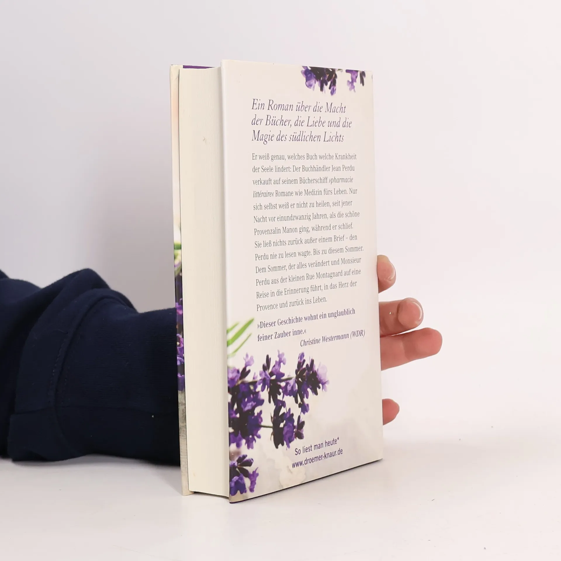 Er weiß genau, welches Buch welche Krankheit der Seele lindert: Auf seinem Bücherschiff, der »literarischen Apotheke«, verkauft der Pariser Buchhändler Jean Perdu Romane wie Medizin fürs Leben. Nur sich selbst weiß er nicht zu heilen, seit jener Nacht vor 21 Jahren, als die schöne Provenzalin Manon ging, während er schlief. Sie ließ nichts zurück außer einem Brief – den Perdu nie zu lesen wagte. Bis zu diesem Sommer. Dem Sommer, der alles verändert und Monsieur Perdu aus der kleinen Rue Montagnard auf eine Reise in die Erinnerung führt, in das Herz der Provence und zurück ins Leben.