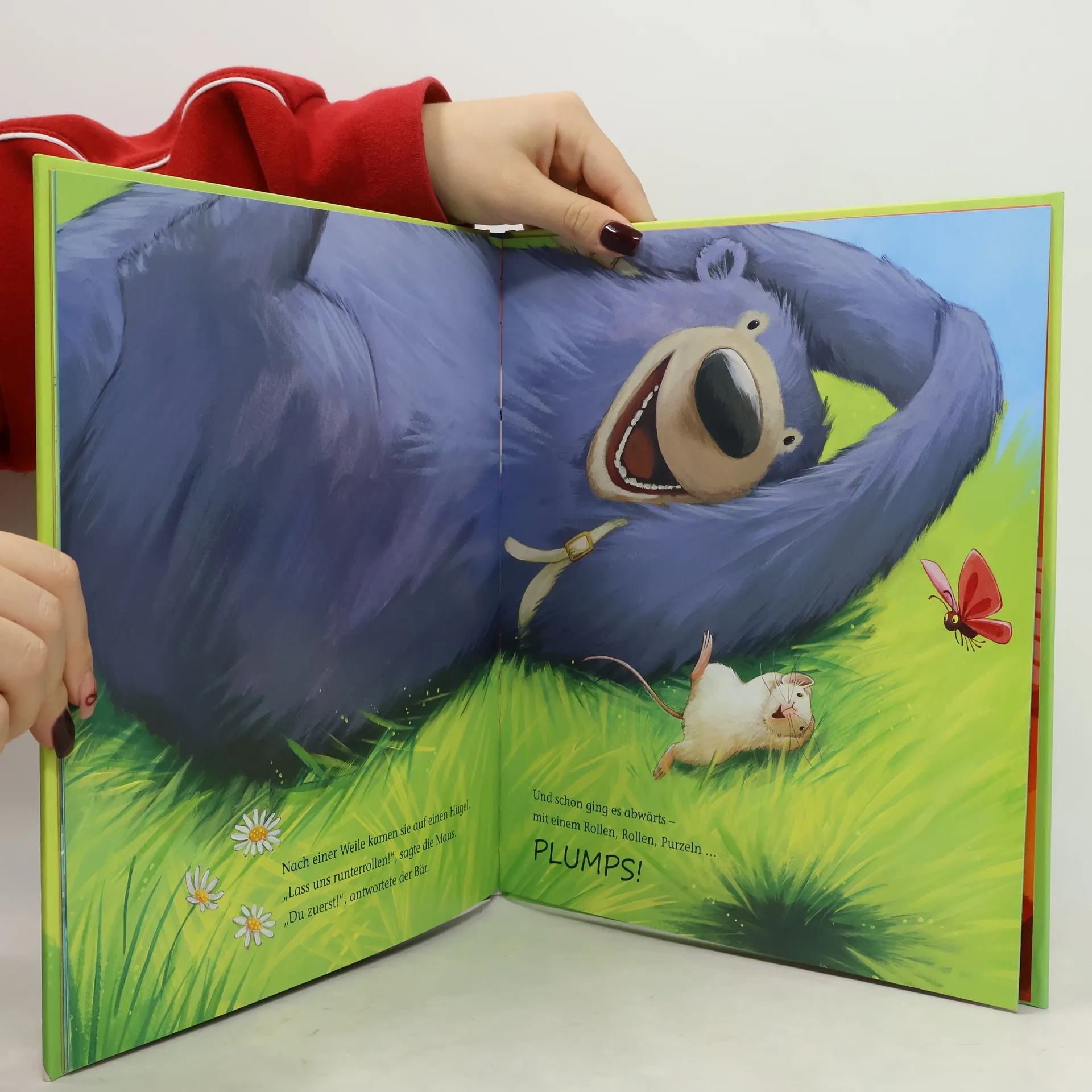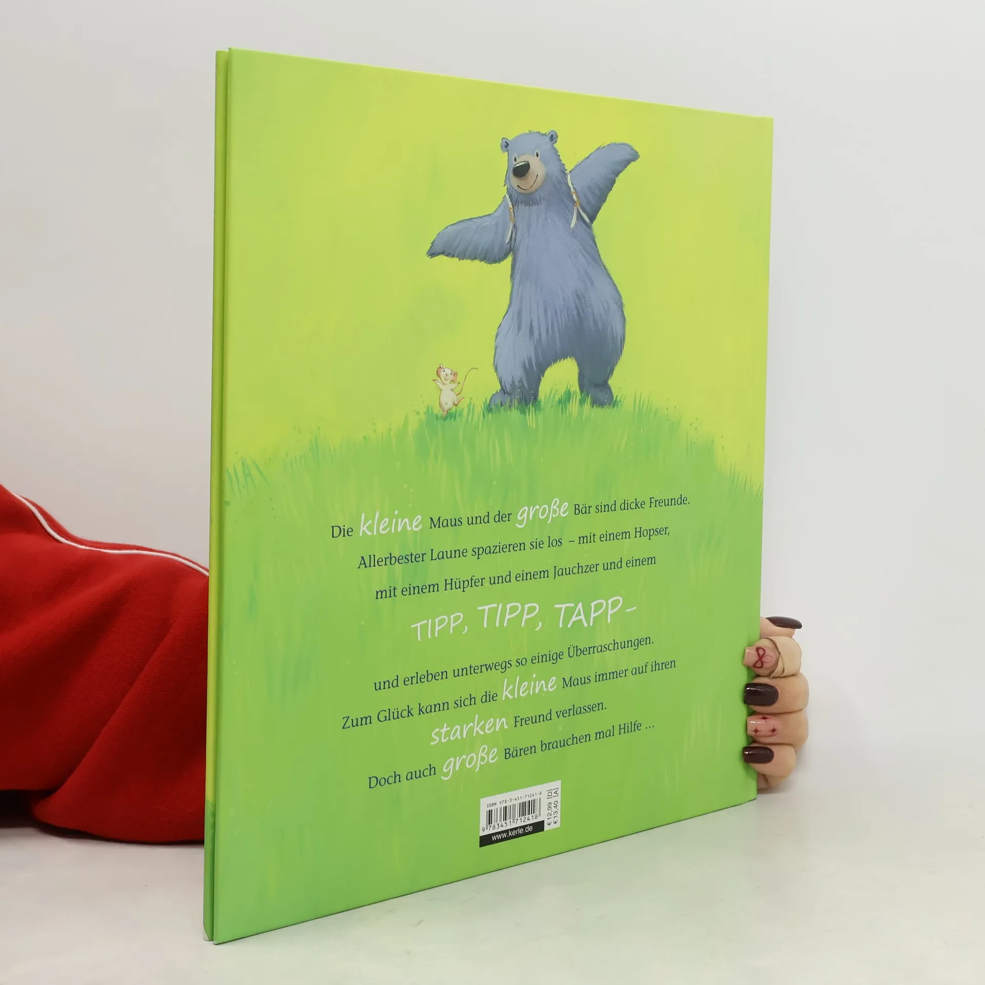 Die kleine Maus und der große Bär sind dicke Freunde. Allerbester Laune spazieren sie los in einen wunderschönen Sommertag – mit einem Hopser, mit einem Hüpfer und einem Jauchzer und einem TIPP, TIPP, TAPP. Unterwegs erleben sie so einige Überraschungen, und mehr als einmal piept die kleine Maus: „Kannst du mir helfen, bitte!“ Zum Glück kann sich die kleine Maus immer auf ihren starken Freund verlassen. Doch auch große Bären brauchen mal Hilfe ...