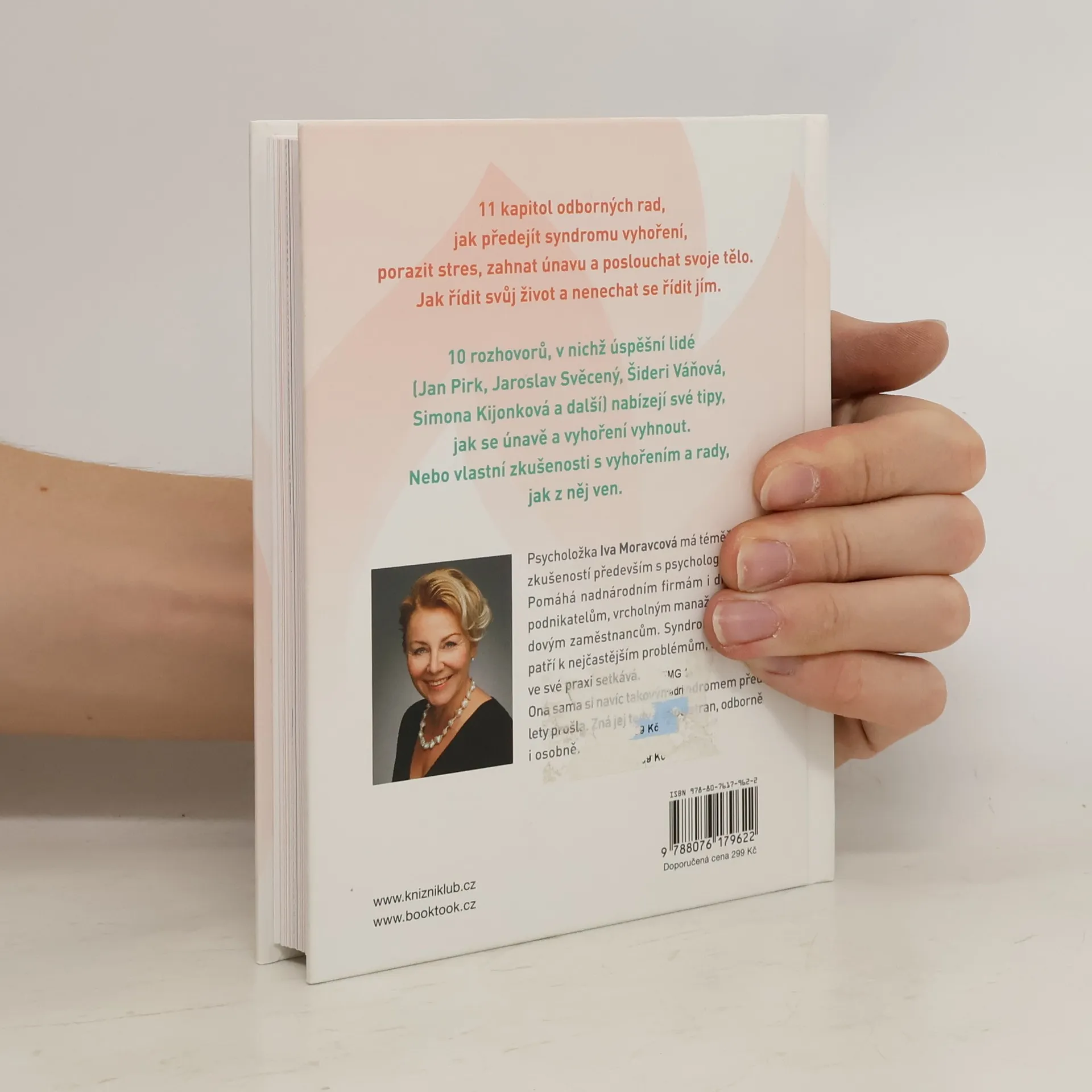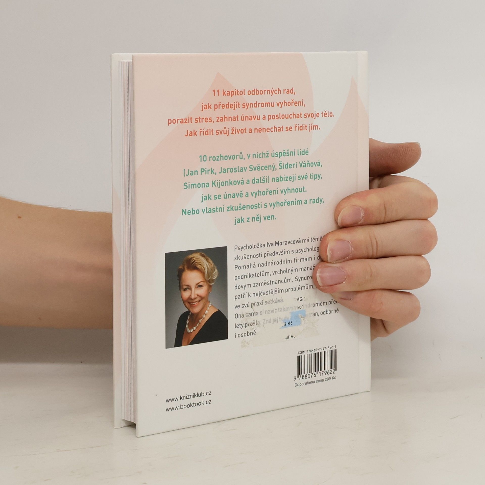Psycholožka Iva Moravcová má téměř 30 let zkušeností především s psychologií práce. Pomáhá nadnárodním firmám i drobným podnikatelům, vrcholným manažerům i řadovým zaměstnancům. Syndrom vyhoření patří k nejčastějším problémům, s nimiž se ve své praxi setkává. Navíc, ona sama si takovým syndromem před lety prošla. Zná ho tedy z obou stran, odborně i osobně. V těchto 11 kapitolách najdete odborné rady, jak předejít syndromu vyhoření, porazit stres, zahnat únavu a poslouchat svoje tělo.