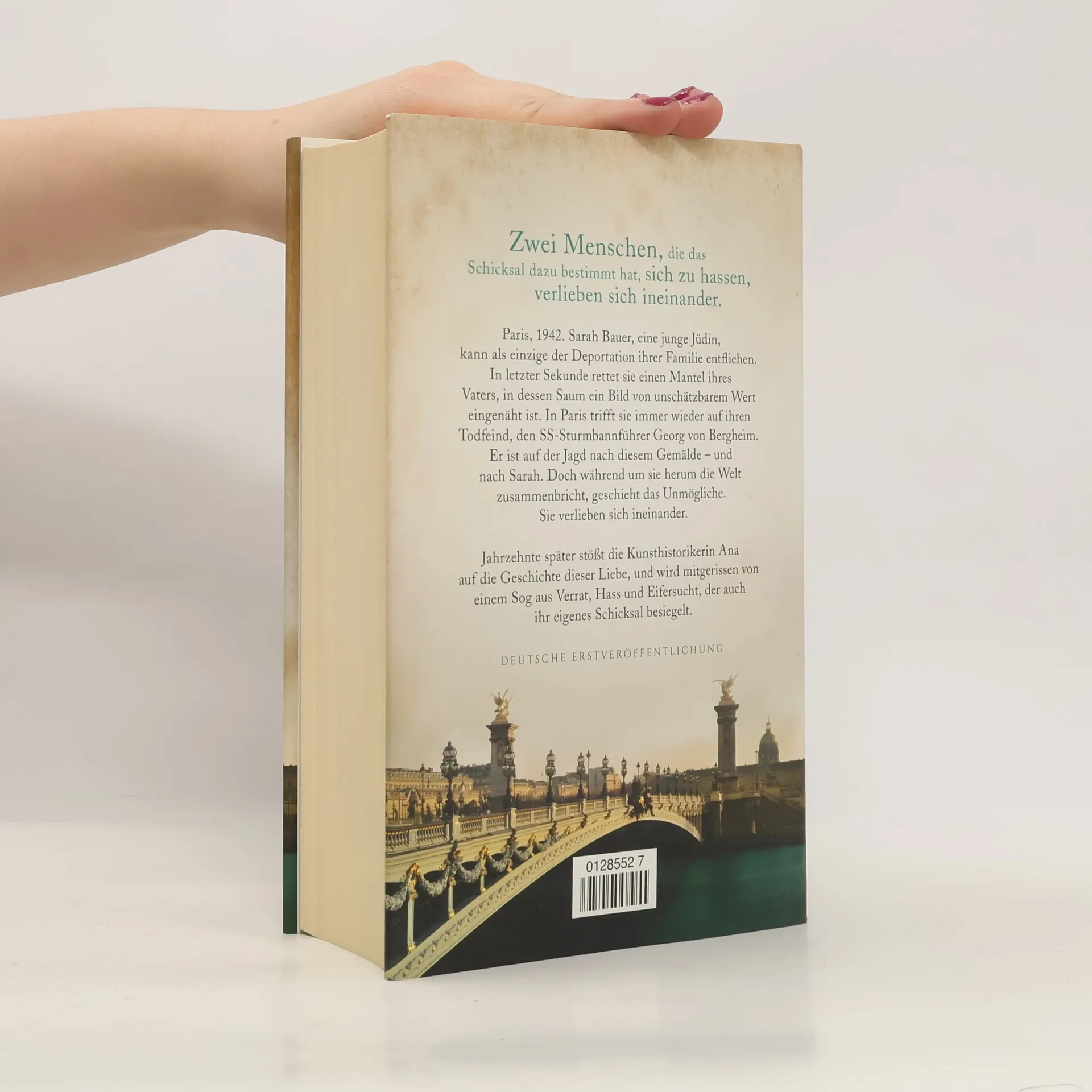 Ihre Liebe war stärker als der Hass, der die Welt entzweite Als der Kunsthistorikerin Ana García Brest ein alter Brief in die Hände fällt, ahnt sie nicht, dass er sie auf die Spur eines sensationellen Kunstfundes führen wird – und zur Geschichte einer unglaublichen Liebe. Frankreich, 1942. Die junge Sarah Bauer entkommt als Einzige der Deportation ihrer Familie. Auf ihrer Flucht trägt sie einen Mantel, der ein geheimnisumwobenes Bild verbirgt. Dabei handelt es sich um jenes Gemälde, das SS-Sturmbannführer Georg von Bergheim um jeden Preis in seinen Besitz bringen soll. Er ist Sarahs größter Feind – und bald ihre einzige Rettung ...