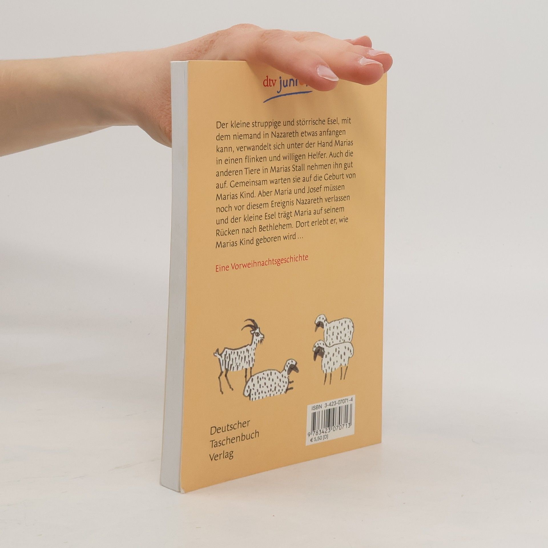 Der kleine struppige und störrische Esel, mit dem niemand in Nazareth etwas anfangen kann, verwandelt sich unter der Hand Marias in einen flinken und willigen Helfer. Auch die anderen Tiere in Marias Stall nehmen ihn gut auf. Gemeinsam warten sie auf die Geburt von Marias Kind. Aber Maria und Josef müssen noch vor diesem Ereignis Nazareth verlassen und der kleine Esel trägt Maria auf seinem Rücken nach Bethlehem. Dort erlebt er, wie Marias Kind geboren wird.