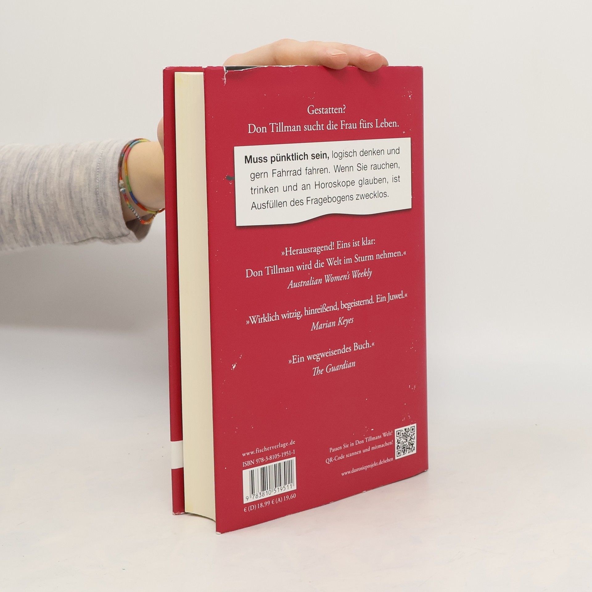 Don Tillman will heiraten. Allerdings findet er menschliche Beziehungen oft höchst verwirrend und irrational. Was tun? Don entwickelt das Ehefrau-Projekt: Mit einem 16-seitigen Fragebogen will er auf wissenschaftlich exakte Weise die ideale Frau finden. Also keine, die raucht, trinkt, unpünktlich oder Veganerin ist. Und dann kommt Rosie. Unpünktlich, Barkeeperin, Raucherin. Offensichtlich ungeeignet. Aber Rosie verfolgt ihr eigenes Projekt: Sie sucht ihren biologischen Vater. Dafür braucht sie Dons Kenntnisse als Genetiker. Ohne recht zu verstehen, wie ihm geschieht, lernt Don staunend die Welt jenseits beweisbarer Fakten kennen und stellt fest: Gefühle haben ihre eigene Logik.