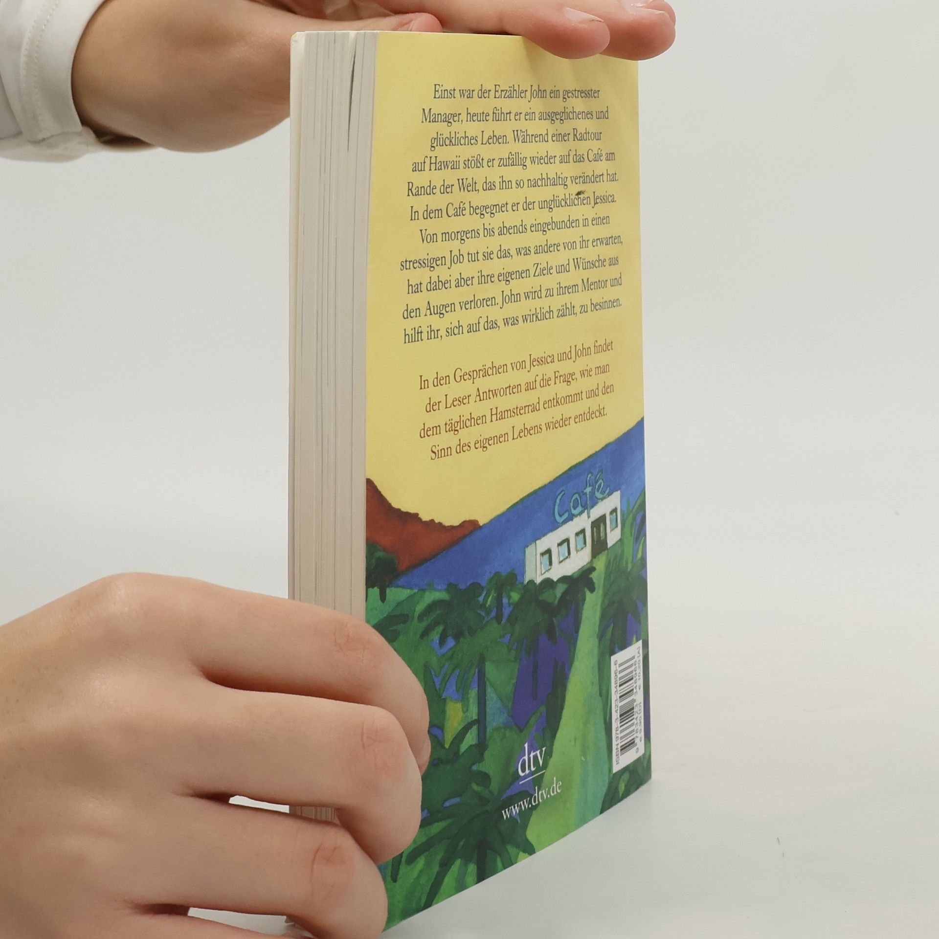 Inspirationen fürs eigene Leben Einst war der Erzähler John ein gestresster Manager, heute führt er ein ausgeglichenes und glückliches Leben. Während einer Radtour auf Hawaii erinnert sich John an den Tag vor zehn Jahren, der sein Leben radikal verändert hat. Damals war er zufällig auf das Café am Rande der Welt gestoßen. Und obwohl er sich an einem völlig anderen Ort befindet, Tausende Kilometer entfernt, sieht er es plötzlich wieder. In dem Café begegnet er Jessica, die unglücklich mit ihrem Leben ist. Eingebunden in ein stressiges Arbeitsleben, tut sie das, was andere von ihr erwarten, hat dabei aber ihre eigenen Ziele und Wünsche aus den Augen verloren. John wird zu ihrem Mentor und hilft ihr, sich auf den Sinn ihres Lebens zu besinnen. In den Gesprächen von Jessica und John findet der Leser Antworten auf die Frage, wie man dem täglichen Hamsterrad entkommt und den Sinn des eigenen Lebens wieder entdeckt. Wunderbar vierfarbig illustriert von Root Leeb.