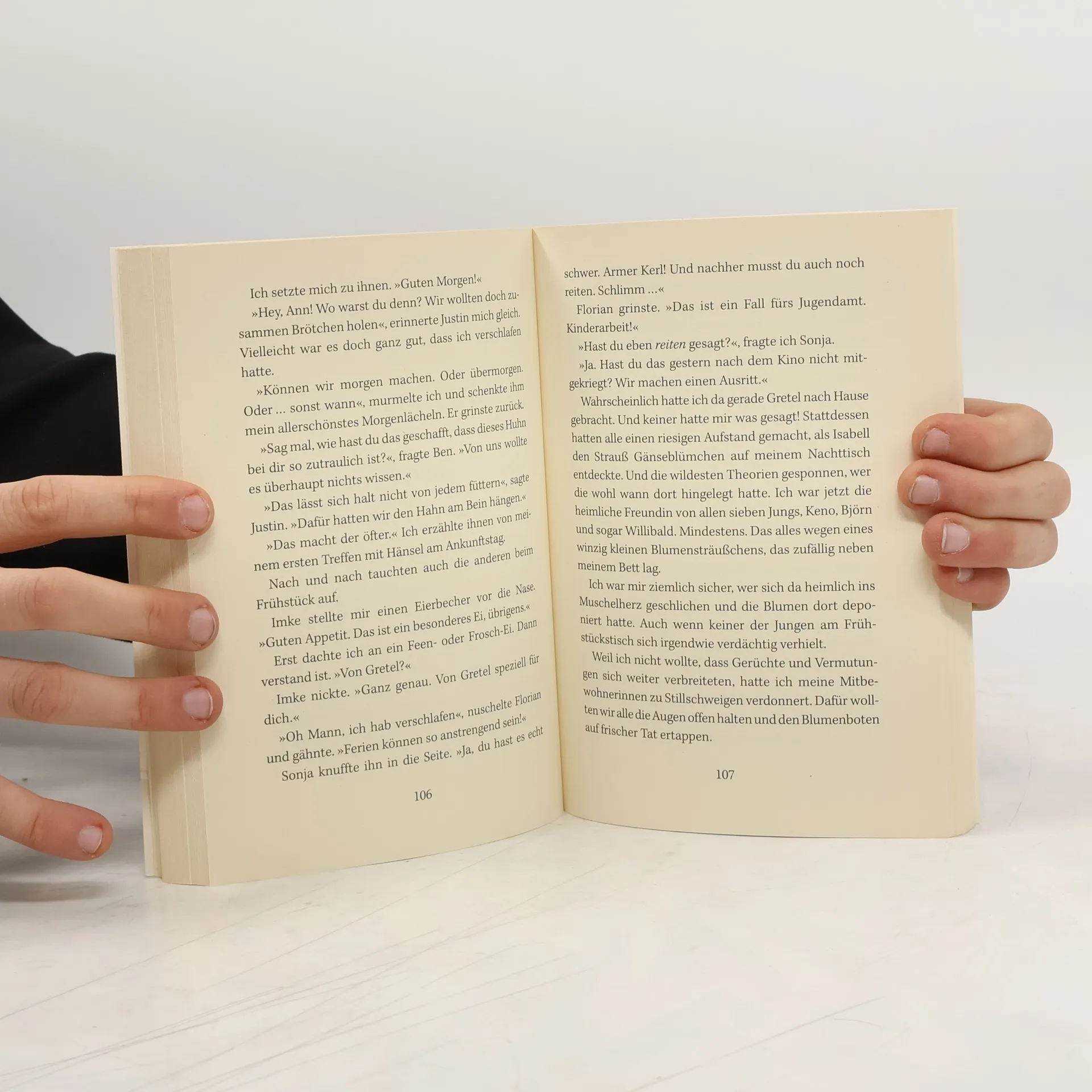 Ein Mädchenroman, so leicht wie der SommerAnn hat sich ihren ersten elternlosen Urlaub an der Nordsee eigentlich anders vorgestellt: Erst wird sie von ihrer besten Freundin versetzt, dann landet sie in einem Ferienlager auf einem kleinen Bauernhof. Gummistiefel statt Pferderomantik! Auf dem Karolinenhof freundet sich Ann schnell mit den anderen Mädchen und der verrückten Henne Gretel an, die sich als gute Beraterin in allen Lebenslagen erweist. Und dann ist da noch Justin, der Ann völlig aus dem Konzept bringt. Schließlich sind die romantischen Gänseblümchensträuße, die sie überall findet, von ihm, oder?