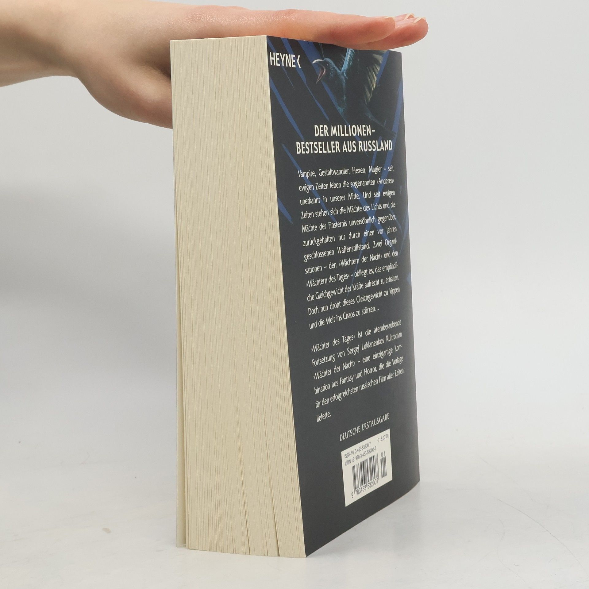 Die grandiose Fortsetzung von „Wächter der Nacht“ Vampire, Gestaltwandler, Hexen, Magier – seit ewigen Zeiten leben die so genannten „Anderen“ unerkannt in unserer Mitte. Und zwei Organisationen obliegt es, den Frieden zwischen den Mächten des Lichts und den Mächten der Dunkelheit aufrechtzuerhalten: den „Wächtern der Nacht“ und den „Wächtern des Tages“. Doch dieser Friede ist so brüchig wie nie zuvor … In Russland die Kult-Fantasy-Serie schlechthin und beliebter als „Der Herr der Ringe“ oder „Harry Potter“ – jetzt auch in Deutschland ein riesiger Erfolg! Nach der Verfilmung von „Wächter der Nacht“, dem erfolgreichsten russischen Film aller Zeiten, kommt 2006 auch die Fortsetzung „Wächter des Tages“ in die deutschen Kinos.