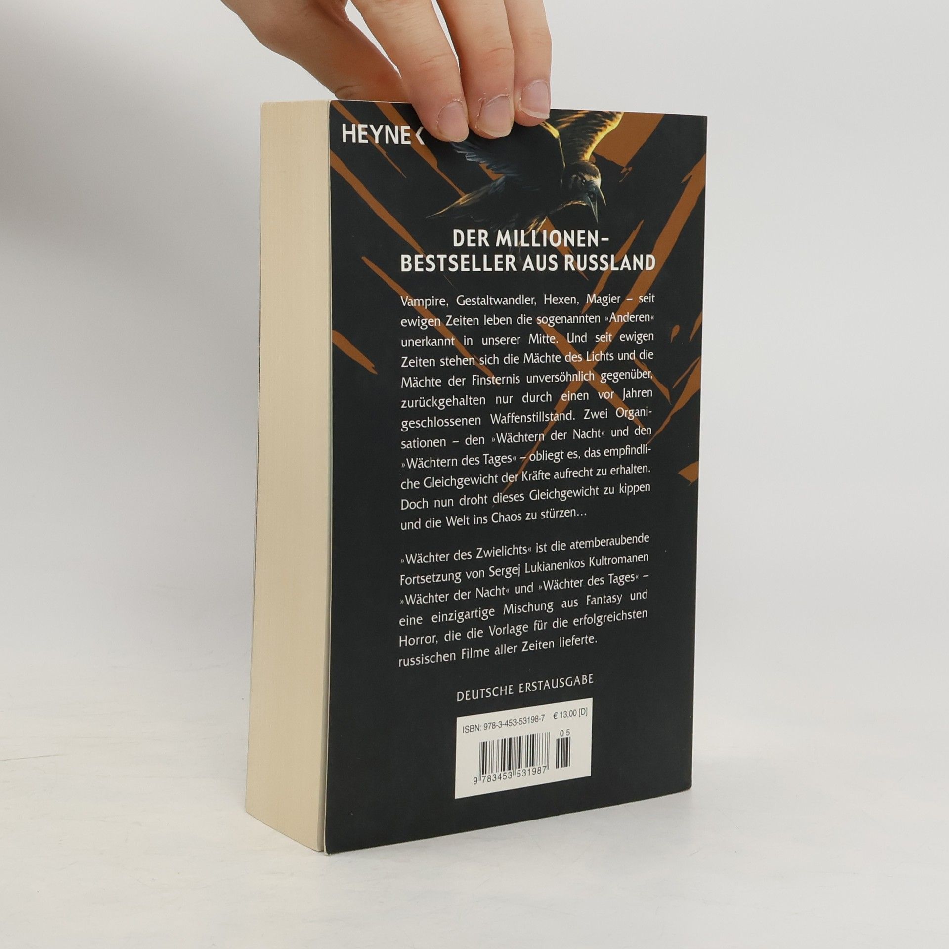 Die Fantasy-Kultserie aus Russland „Wächter des Zwielichts“ ist nach „Wächter der Nacht“ und „Wächter des Tages“ der dritte große Roman in Sergej Lukianenkos Bestsellersaga um die so genannten »Anderen« – Vampire, Gestaltwandler, Hexen und Magier –, die seit ewigen Zeiten unerkannt in unserer Mitte leben. Zwei Organisationen obliegt es, den Frieden zwischen den Mächten des Lichts und den Mächten der Dunkelheit zu erhalten. Doch dieser Friede hat nun keinen Bestand mehr – und auf Moskaus Straßen tobt die entscheidende Schlacht ... Rechtzeitig zum deutschen Kinostart von „Wächter des Tages“ im Herbst 2006 erreicht die russische Kult-Fantasy-Serie, die inzwischen auch hierzulande zahllose Fans hat, ihren einzigartigen Höhepunkt.