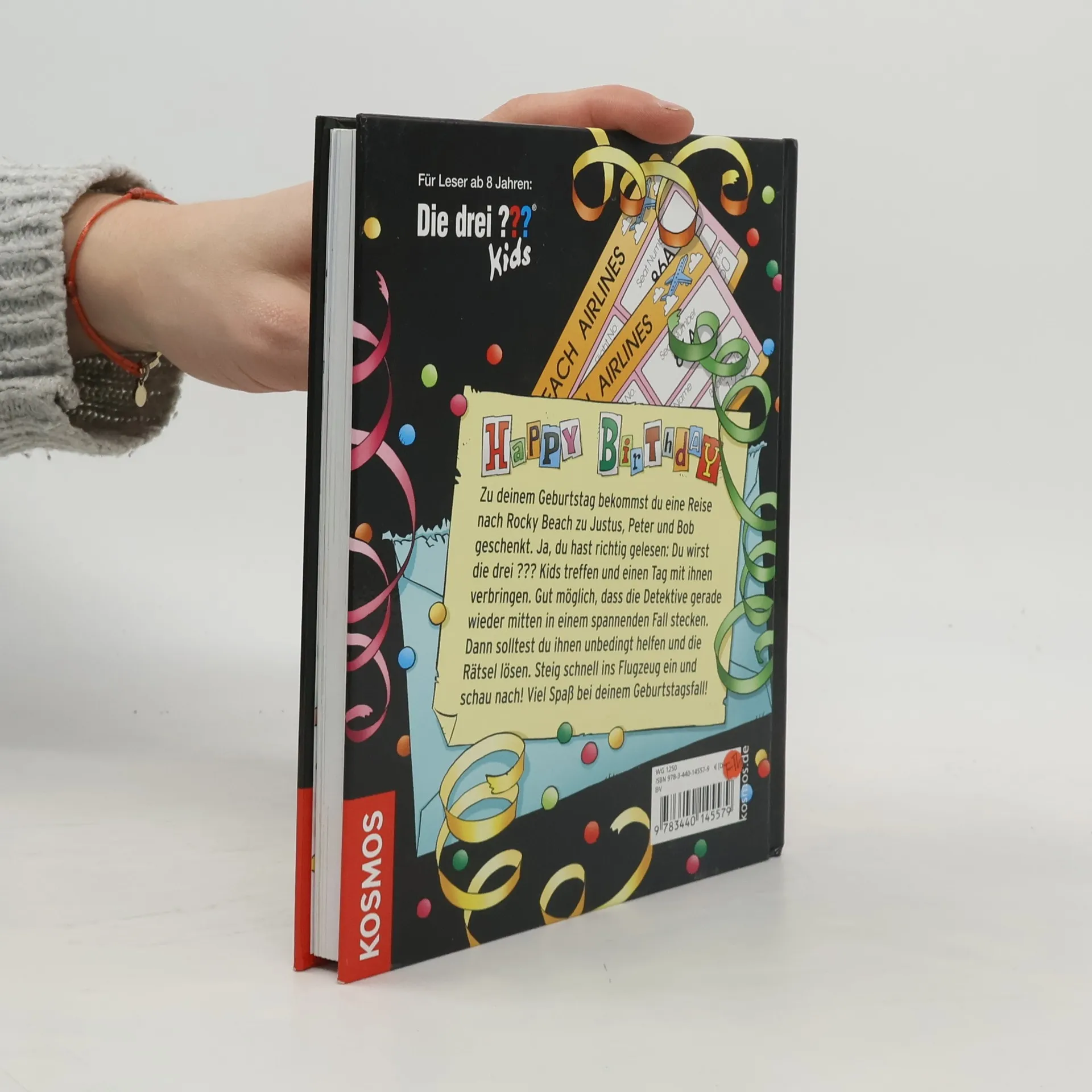 Mehr kann man sich nicht wünschen: Wer als Geburtstagskind dieses Buch aufschlägt, bekommt eine Reise nach Rocky Beach geschenkt und feiert zusammen mit den Die drei ??? Kids! Natürlich wartet am Flughafen nicht nur das Begrüßungskomitee aus Justus, Peter und Bob, sondern auch ein kniffliger Fall. Die Kultdetektive setzen auf ihren Ehrengast als Vierten im Team, um das Geheimnis zu lüften. Bald sorgen verzwickte Rätsel, Bilder und Aufgaben für Nervenkitzel. Der Leser erlebt sich unmittelbar als Teil der Geschichte, was den Fall noch spannender macht.