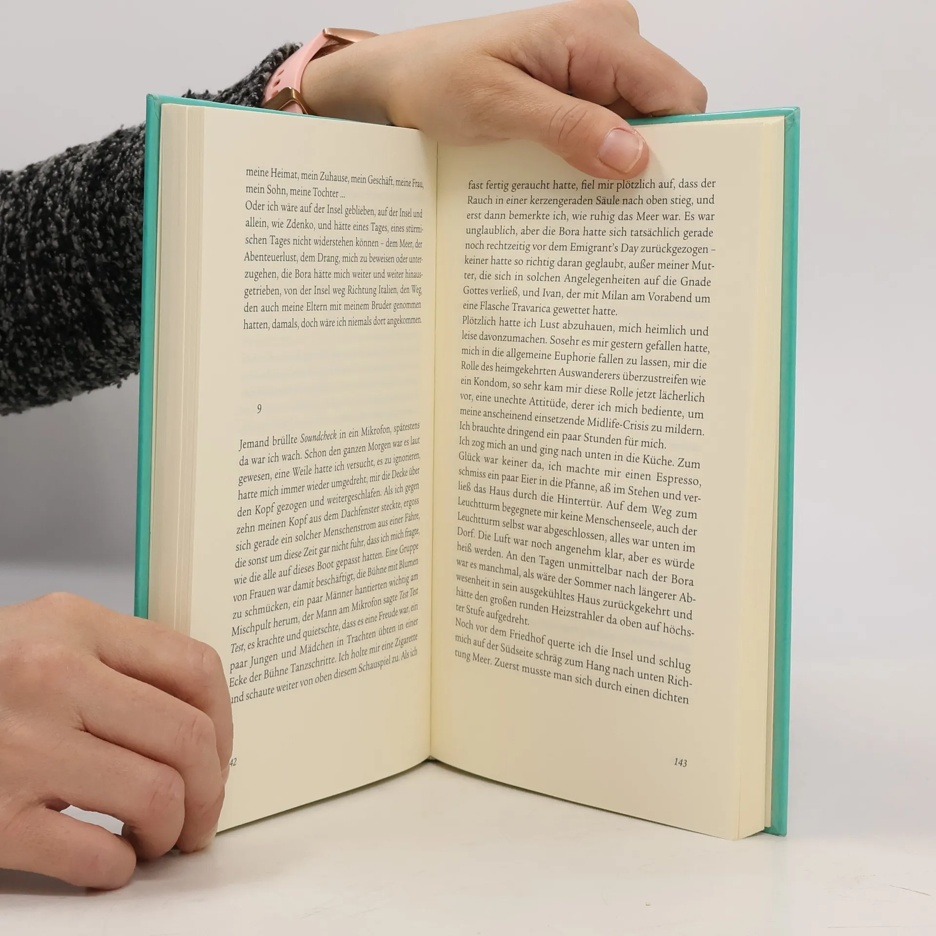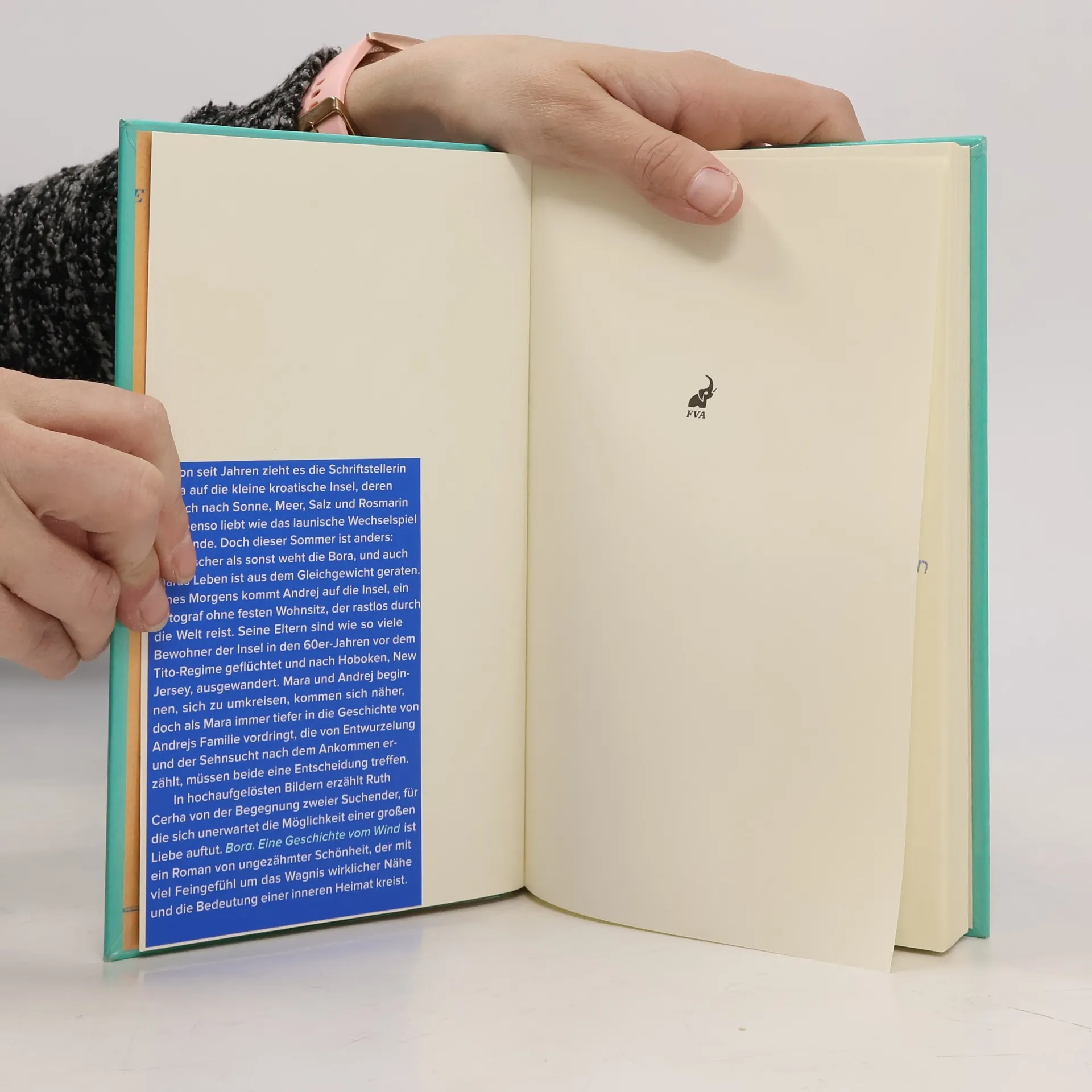 Schon seit Jahren zieht es die Schriftstellerin Mara auf die kleine kroatische Insel, deren Geruch nach Sonne, Meer, Salz und Rosmarin sie ebenso liebt wie das launische Wechselspiel der Winde. Doch dieser Sommer ist anders: Stürmischer als sonst weht die Bora, und auch Maras Leben ist aus dem Gleichgewicht geraten. Eines Morgens kommt Andrej auf die Insel, ein Fotograf ohne festen Wohnsitz, der rastlos durch die Welt reist. Seine Eltern sind wie so viele Bewohner der Insel in den 60er-Jahren vor dem Tito-Regime geflüchtet und nach Hoboken, New Jersey, ausgewandert. Mara und Andrej beginnen, sich zu umkreisen, kommen sich näher, doch als Mara immer tiefer in die Geschichte von Andrejs Familie vordringt, die von Entwurzelung und der Sehnsucht nach dem Ankommen erzählt, müssen beide eine Entscheidung treffen.