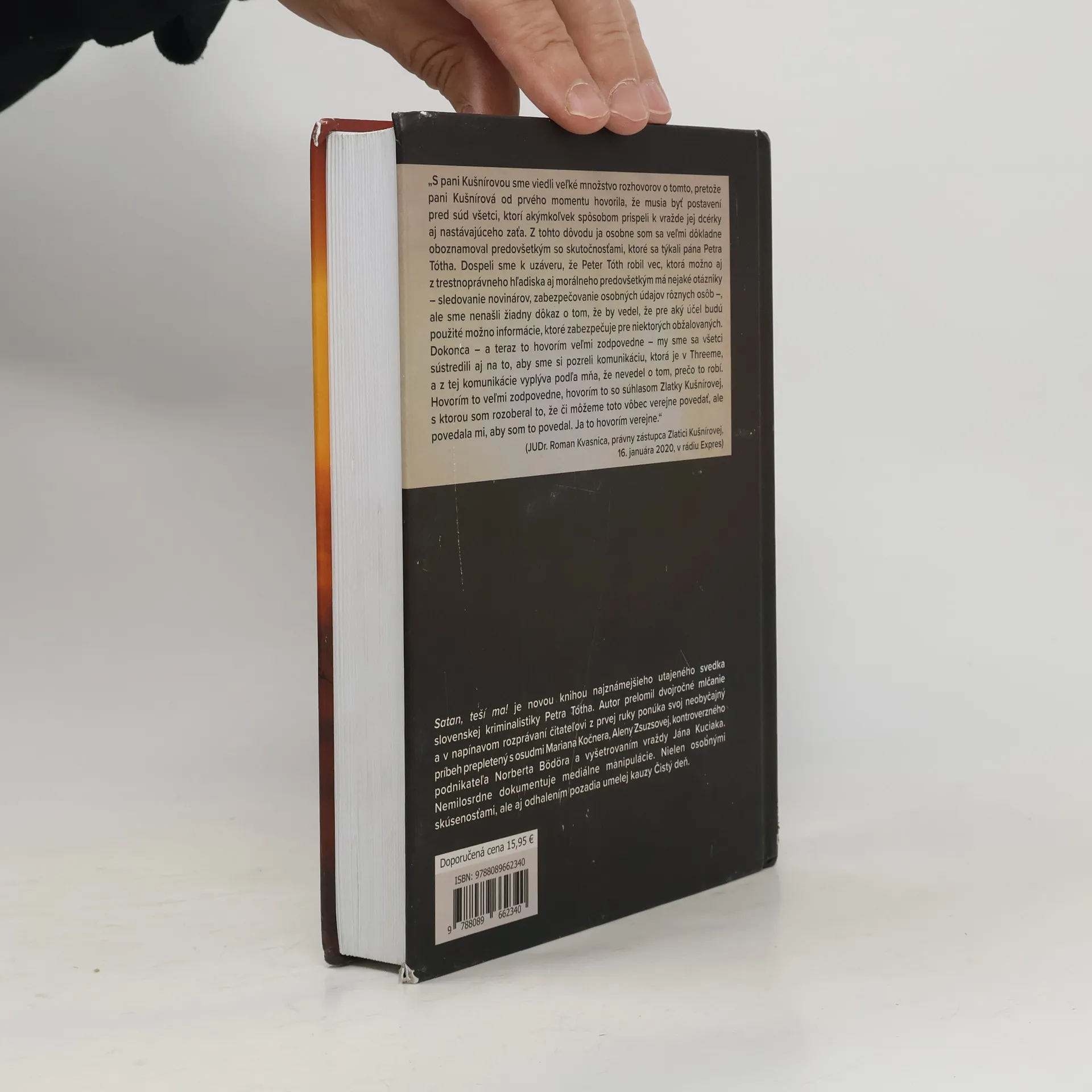 Satan, teší ma! je novou knihou Petra Tótha, známeho utajeného svedka slovenskej kriminalistiky, ktorý po dvojročnom mlčaní odhaľuje prepletené príbehy Mariana Kočnera, Aleny Zsuzsovej, vraždy Jána Kuciaka a ďalších. Autor dramaticky odhaľuje osudovú chybu Kočnera, ktorá viedla k odhaleniu Threemy a korupčnej siete, čím vrhá svetlo na nečestné praktiky a morálnu špinu v slovenskej spoločnosti. Tóth pokračuje v kritike stavu slovenskej žurnalistiky a zachytáva útrapy rodiny utajeného svedka, ktorá musela hľadať útočisko na opačnom brehu Atlantiku po nezákonnom vyzradení jeho identity. Svedok a jeho rodina utekali pred pomstou nájomných vrahov aj pred úkladmi tajnej služby vlastného štátu. Kniha sa odohráva v rôznych krajinách Severnej Ameriky a Európy, pričom paralelné dejové línie ponúkajú komplexný pohľad na situáciu. Tóthova kniha predstavuje postavy z podsvetia, politiky, médií a spravodajských služieb a opisuje intrigy malého Slovenska. Ponúka nový pohľad na vraždu Jána Kuciaka a spôsob jej vyšetrovania, ako aj na reakcie hysterickej tlače, čím zachytáva najtraumatickejší zážitok slovenskej spoločnosti za posledné roky.