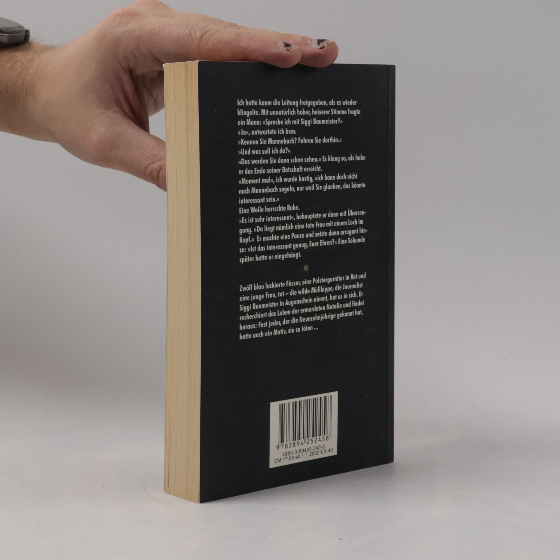Zwölf blau lackierte Fässer, eine Polstergarnitur in Rot und eine junge Frau, tot – die wilde Müllkippe, die Journalist Siggi Baumeister in Augenschein nimmt, hat es in sich. Er recherchiert das Leben der ermordeten Natalie und findet heraus: Fast jeder, der die Neunzehnjährige gekannt hat, hatte auch ein Motiv, sie zu töten.
