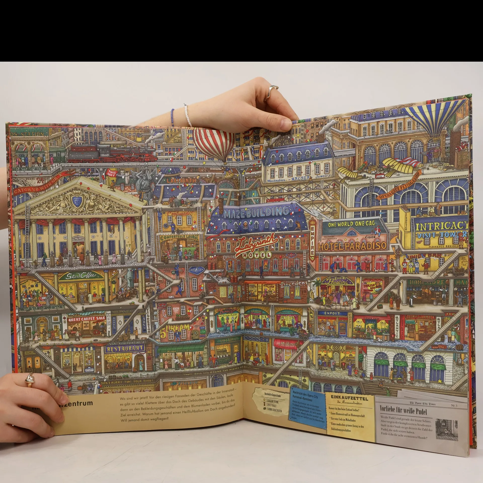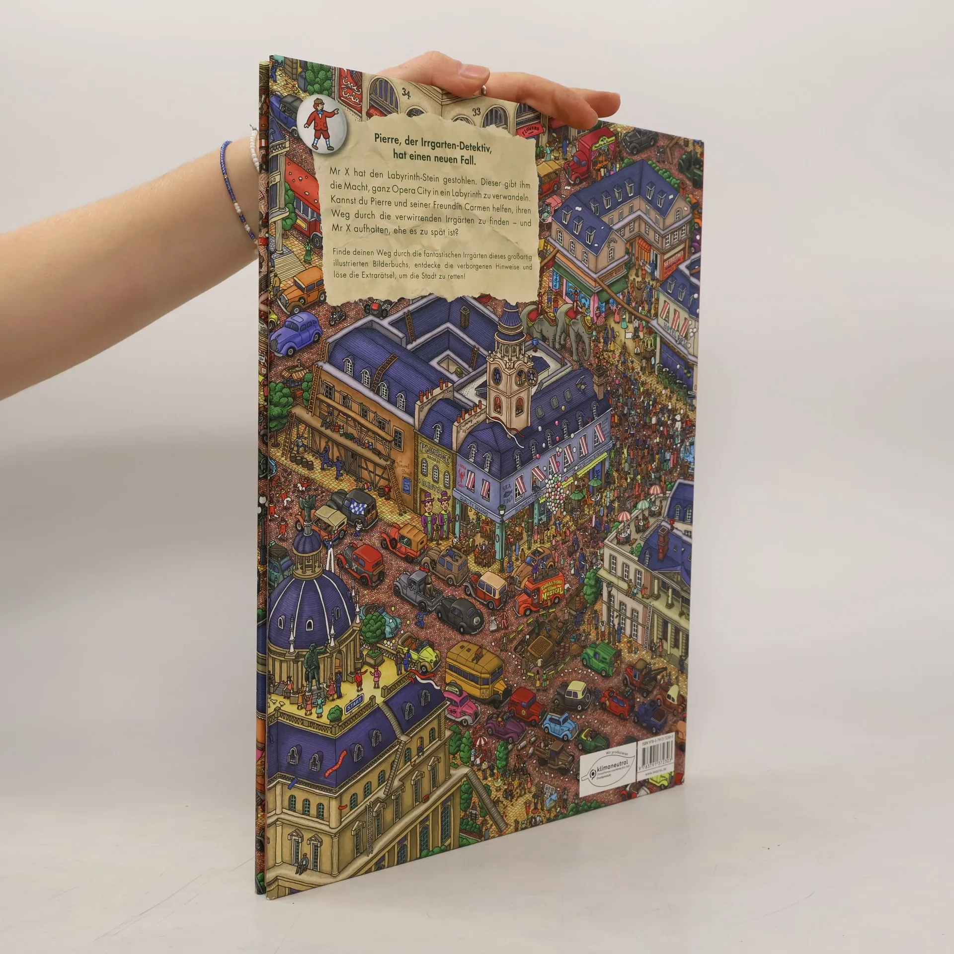 Auf der Suche nach Mr. X Fantastische Irrgärten zum Knobeln: Dieses labyrinthische Suchbilderbuch im XXL-Format ist ausgearbeitet bis in die kleinsten Details. Mr. X hat den magischen Stein aus dem Museum von Opera City gestohlen, der die Gabe hat, alles in ein Labyrinth zu verwandeln. Häng dich mit Pierre, dem cleveren Detektiv, an seine Fersen, finde deinen Weg durch die Irrgärten und hole den Stein zurück. Viele Abenteuer und Aufgaben warten auf dich in den labyrinthischen Straßen der Stadt, beim Ballonfestival, im Spukhaus, beim Schloss, oder im magischen Wald. Mr. X darf nicht entkommen, sonst ist Opera City verloren!