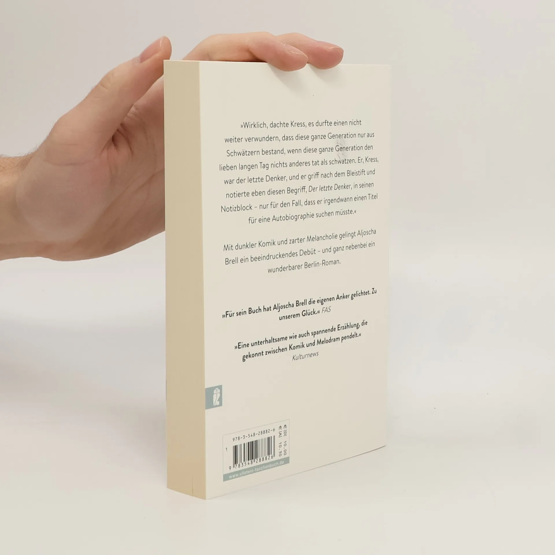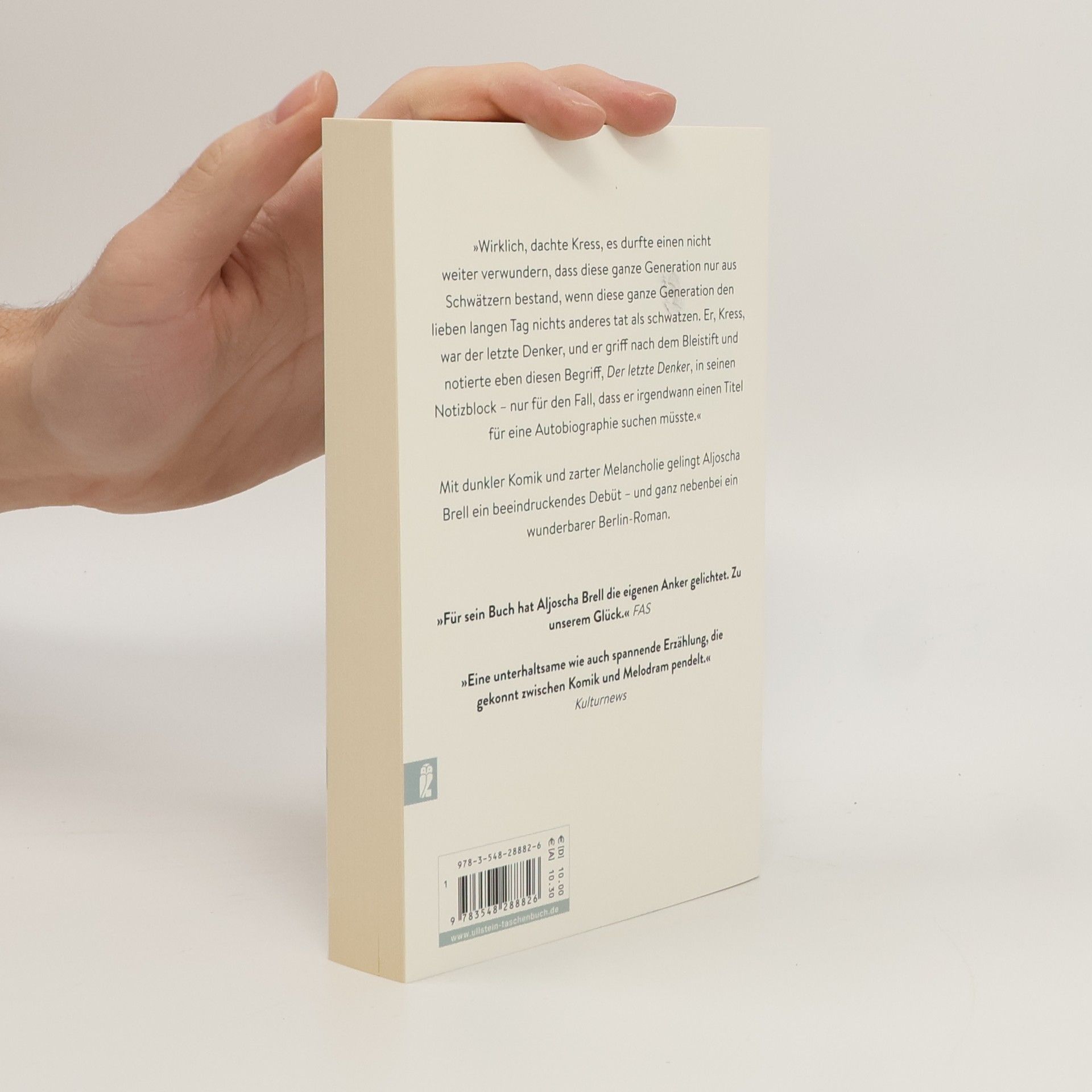 Die Welt ist eine Zumutung, jedenfalls für Kress. Wohin er sieht, Mittelmaß, Dummheit, Ignoranz. Einzig die Universität ist in Grenzen ein erträglicher Ort, dort studiert Kress die Großen: Goethe, Kleist, Kant, eben was im 19. Jahrhundert Rang und Namen hatte. Nach dieser glanzvollen Epoche ging es bergab, für Kress bis nach Berlin-Neukölln. Dort lebt er in einer winzigen, unsanierten Hinterhofwohnung und führt bei Ketchuptoast und Multivitamintabletten philosophische Gespräche mit dem Tauberich Gieshübler. Aber dann geschieht etwas Unvorhergesehenes: Kress verliebt sich. Und sieht sich auf einmal gezwungen, all das zu tun, was andere so machen: Wochenendausflüge, Partys, Small Talk. Kress scheitert grandios, an der Welt, an sich selbst. Aber er macht weiter, scheitert weiter, scheitert besser, und am Ende gibt es selbst für jemanden wie ihn noch Hoffnung. Mit dunkler Komik und zarter Melancholie gelingt Aljoscha Brell ein beeindruckendes Debüt - und ganz nebenbei ein wunderbarer Berlin-Roman.