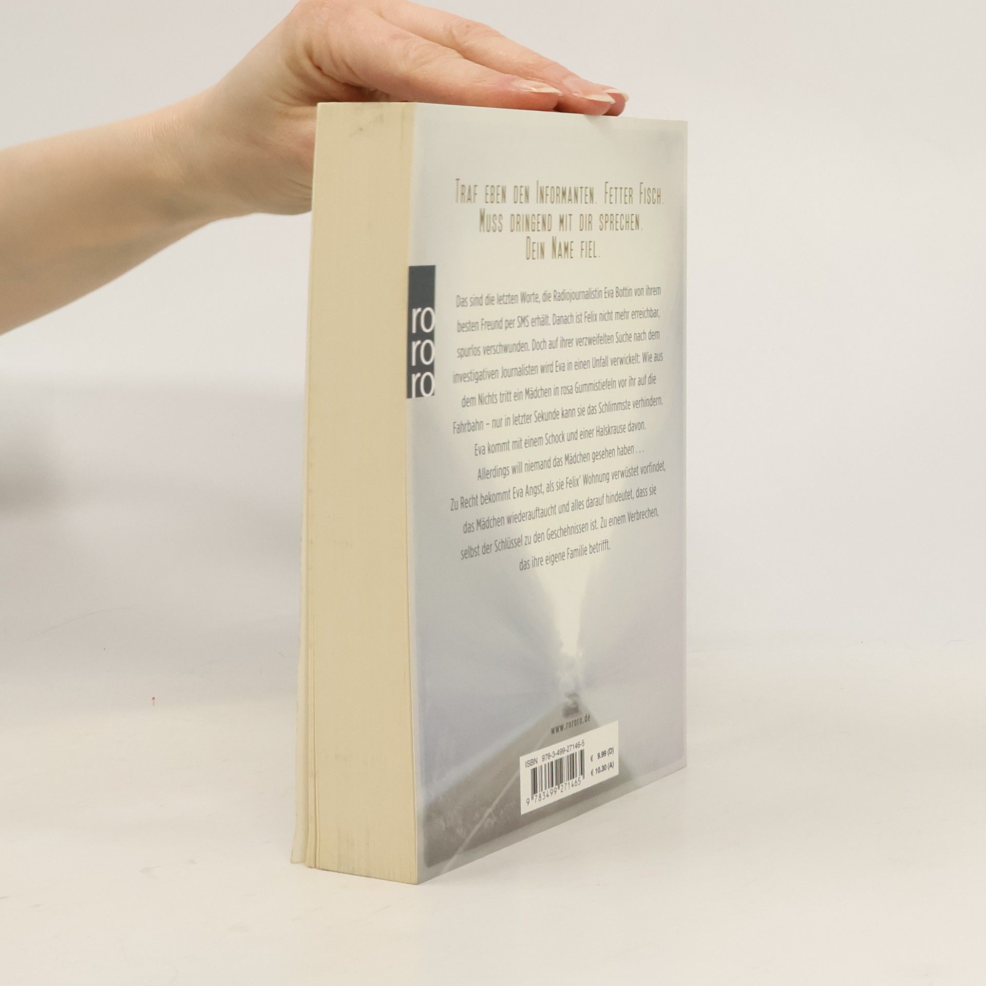 Traf eben den Informanten. Fetter Fisch. Muss dringend mit dir sprechen. Dein Name fiel. Das sind die letzten Worte, die Radiojournalistin Eva Bottin von ihrem besten Freund per SMS erhält. Danach ist Felix nicht mehr erreichbar, spurlos verschwunden. Doch auf ihrer verzweifelten Suche nach dem investigativen Journalisten wird Eva in einen Unfall verwickelt: Wie aus dem Nichts tritt ein Mädchen in rosa Gummistiefeln vor ihr auf die Fahrbahn - nur in letzter Sekunde kann sie das Schlimmste verhindern. Eva kommt mit einem Schock und einer Halskrause davon. Allerdings will niemand das Mädchen gesehen haben...Zurecht bekommt Eva Angst, als sie Felix‘ Wohnung verwüstet vorfindet, das Mädchen wieder auftaucht, und alles darauf hindeutet, dass sie selbst der Schlüssel zu den Geschehnissen ist. Zu einem Verbrechen, das ihre eigene Familie betrifft.